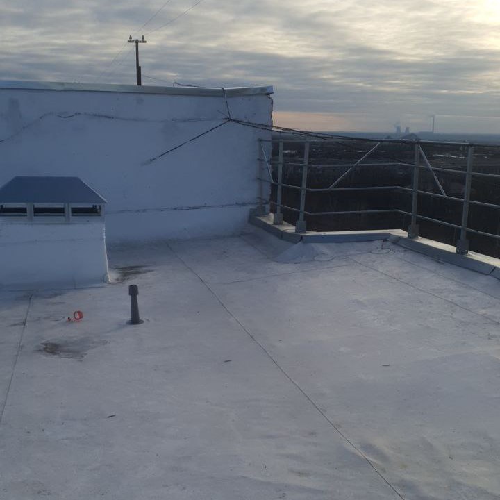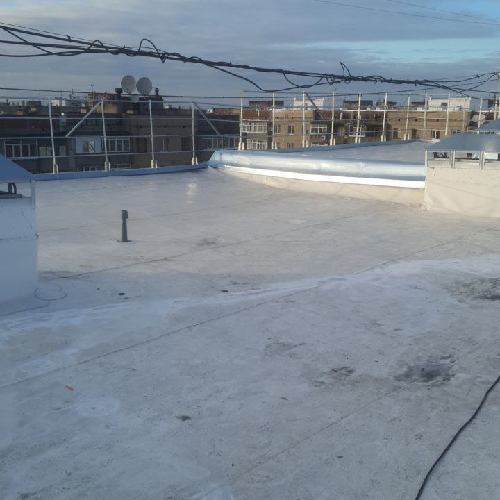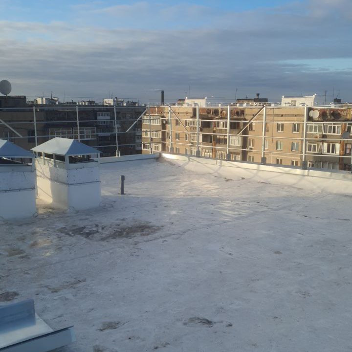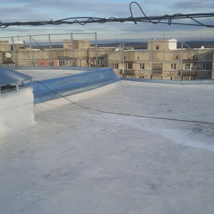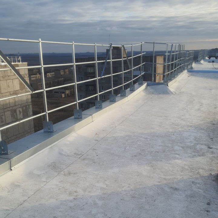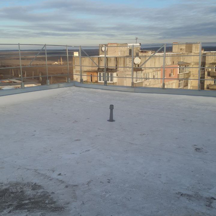 Рабочие уложили мембранное покрытие, выполнили работы по установке металлических барьеров и установке защитных материалов на вентиляционные шахты многоквартирного дома.