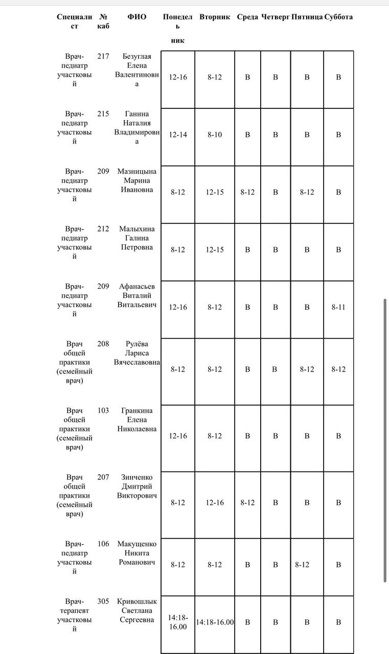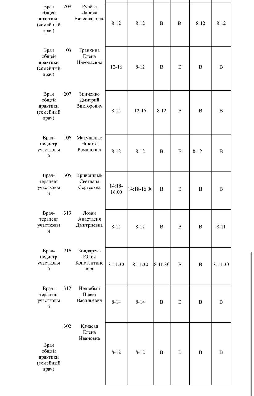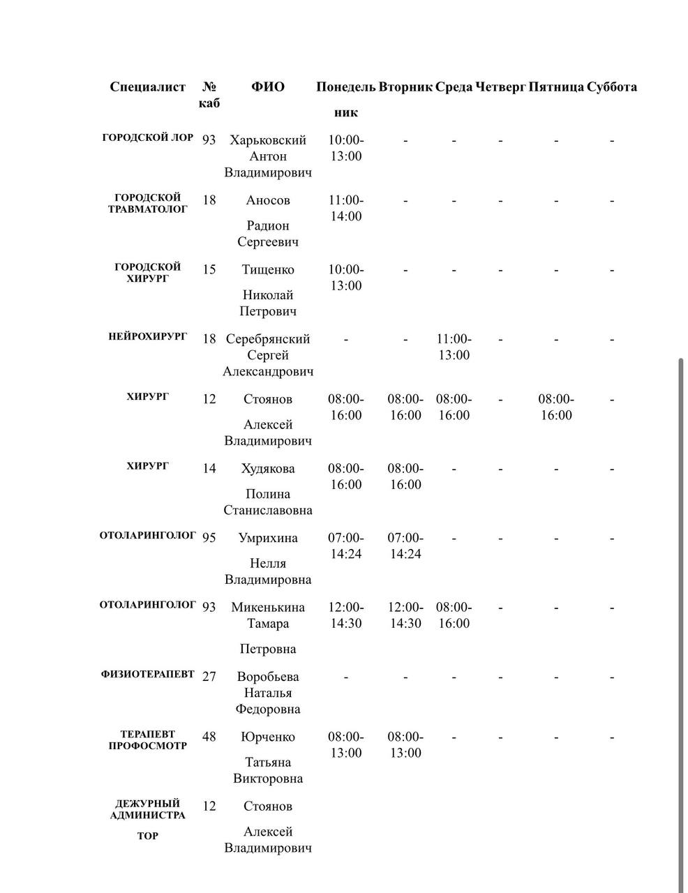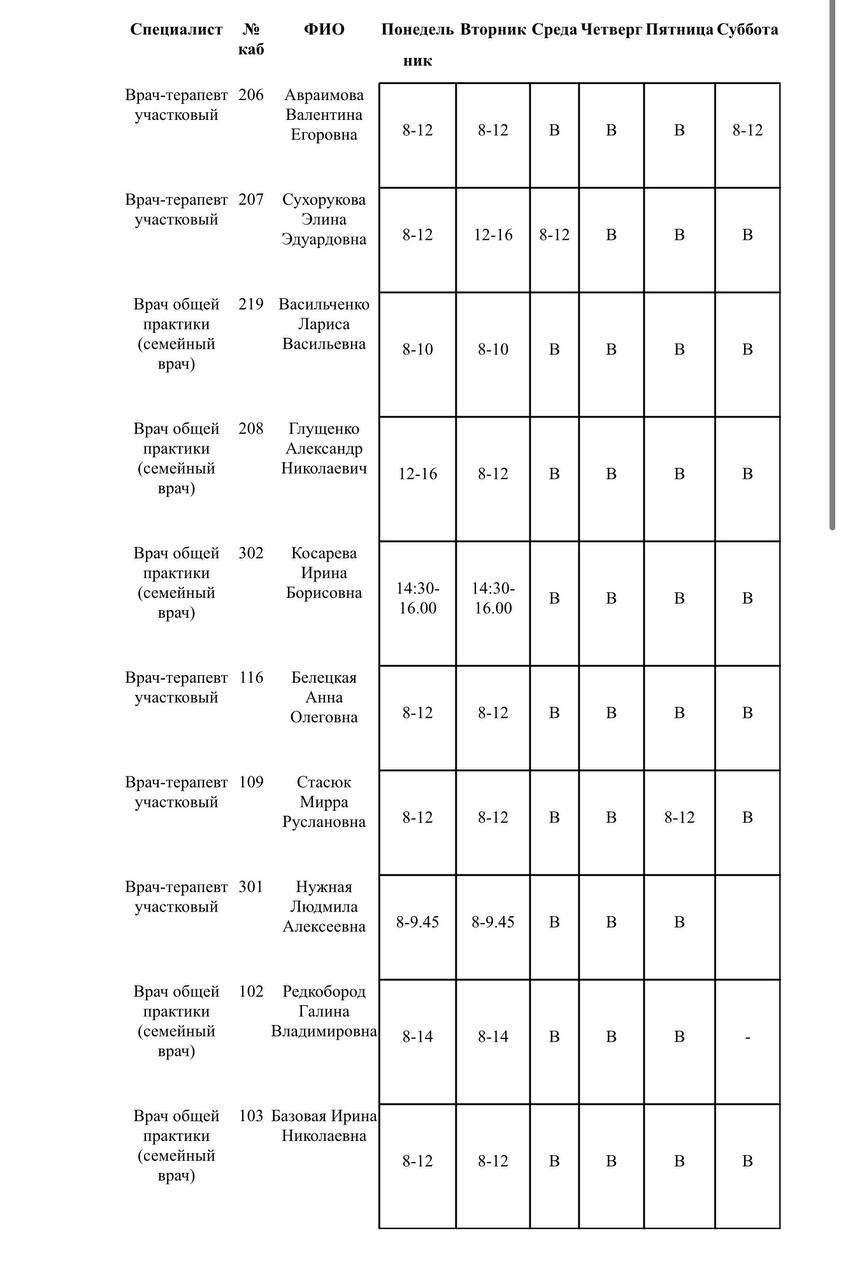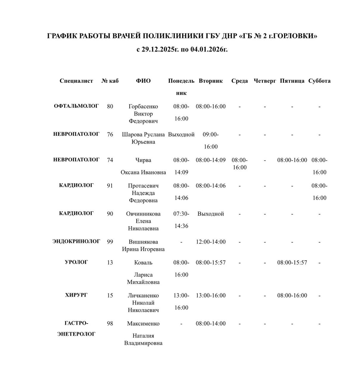 График работы специалистов ГБУ ДНР «Городская больница № 1 г. Горловки», ГБУ ДНР «Городская больница № 2 г. Горловки»