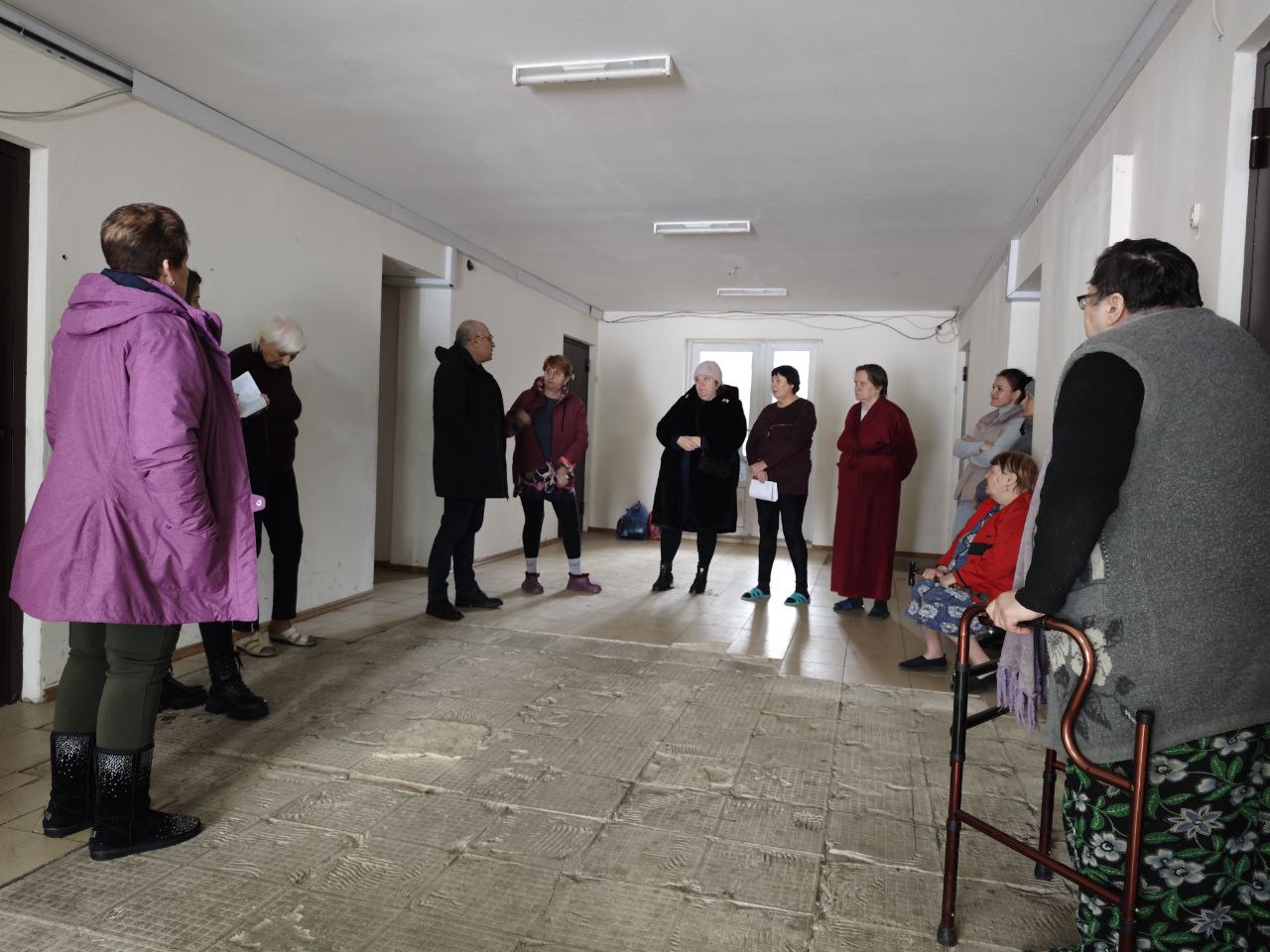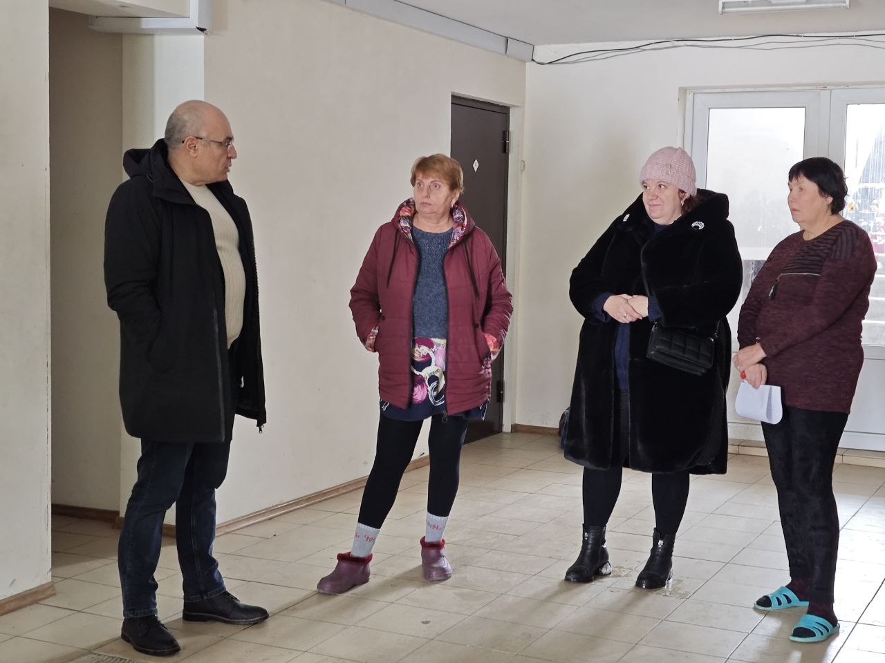 Жителей дома интересовали вопросы: освещение в подъезде, неисправность двери в подъезде с выходом на лестничные площадки и наиболее актуальный — это порядок подачи документов и соответственно получения компенсации за разрушенное в ходе боевых действий жилье.
