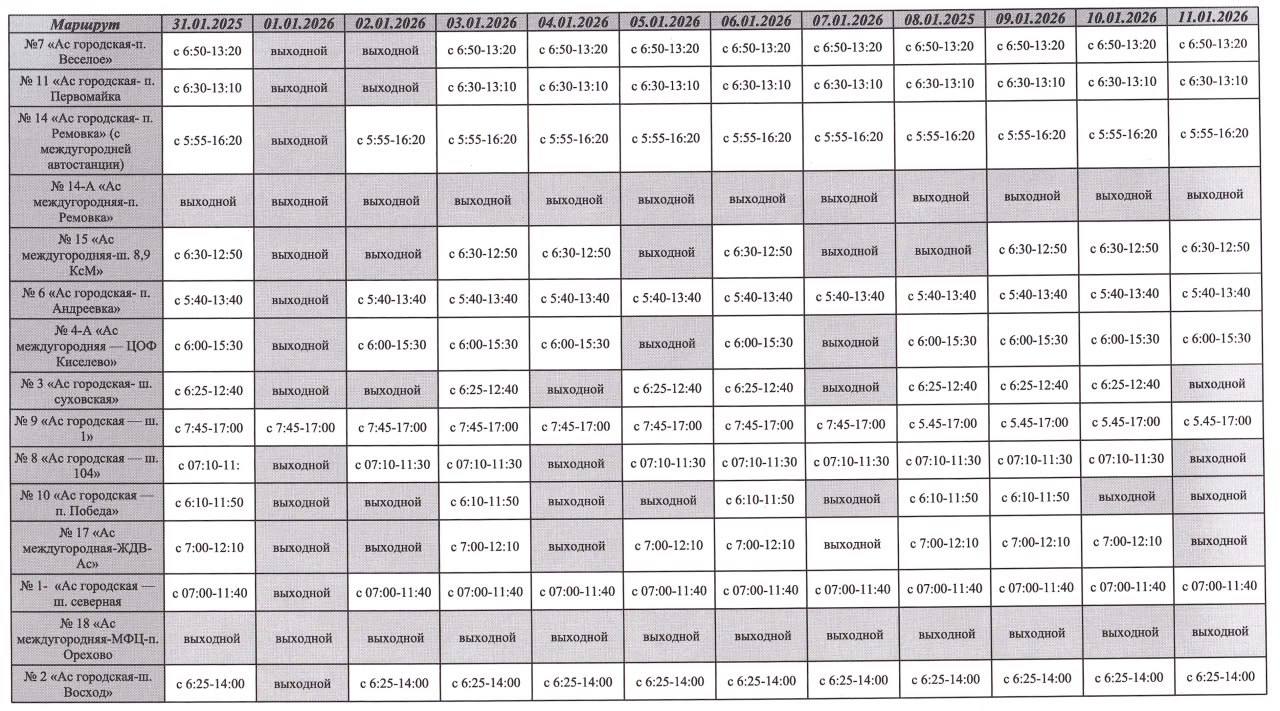График движения транспорта в праздничные и выходные дни