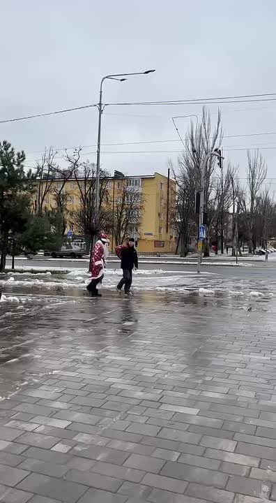 Тем временем Деда Мороза заметили на обледенелой дороге в Мариуполе