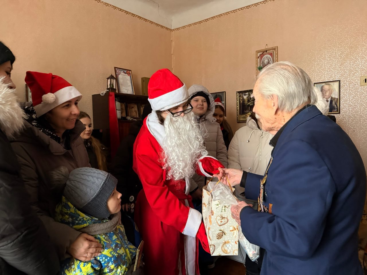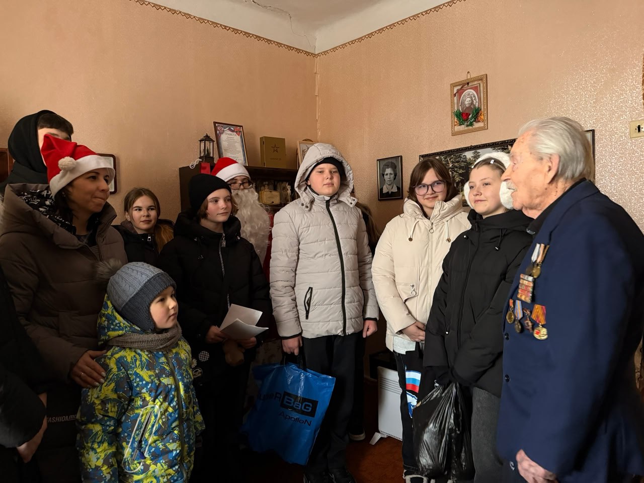 По инициативе советника директора по воспитанию ГБОУ «ШКОЛА № 5 г.о. Горловка», члена Единой России Натальи Горбуновой, школьники вместе с дедушкой Морозом поздравили Федора Ивановича Брынцева с наступающим Новым годом.