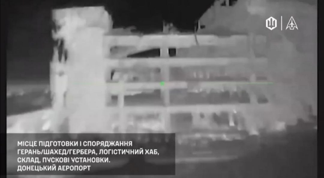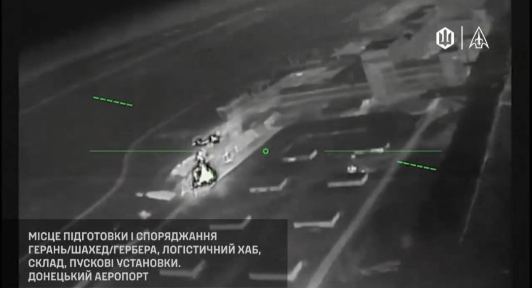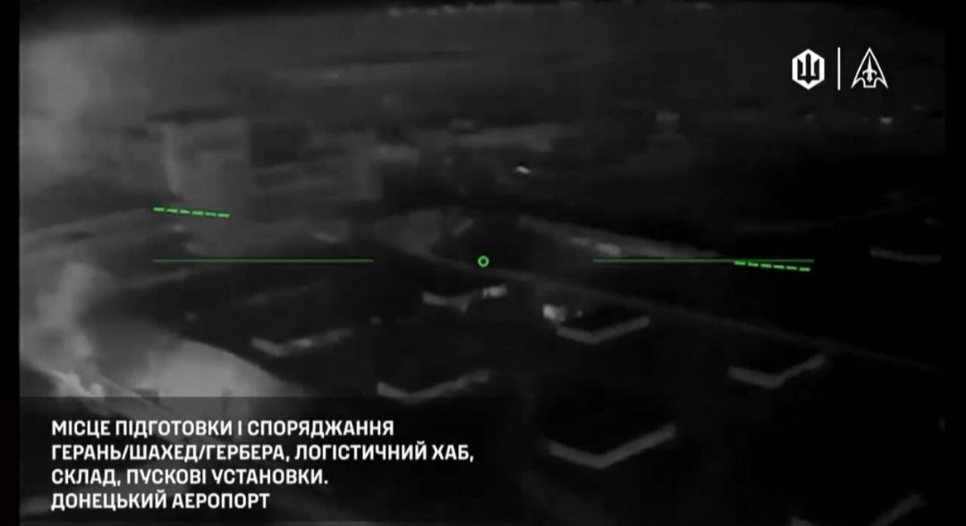 Сегодня ночью украинские дроны-камикадзе в количестве не менее 16 штук атаковали аэропорт Донецка, который был переоборудован в базу запуска гераней.
