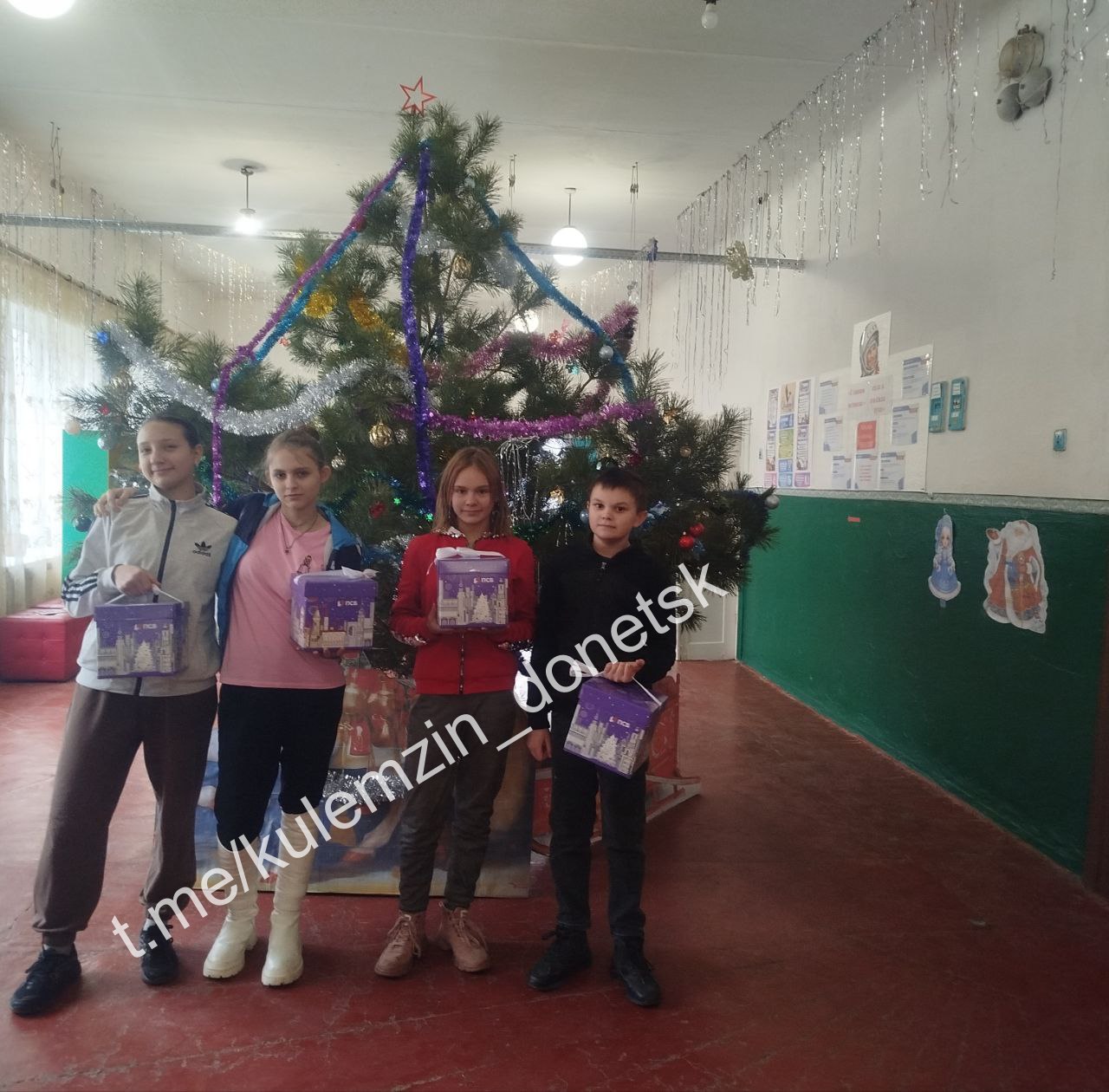 От Ресурсного центра, банка ПСБ и общественной организации «Ленинградский доброволец» при содействии администрации г.о. Донецк передали детям новогодние подарки.