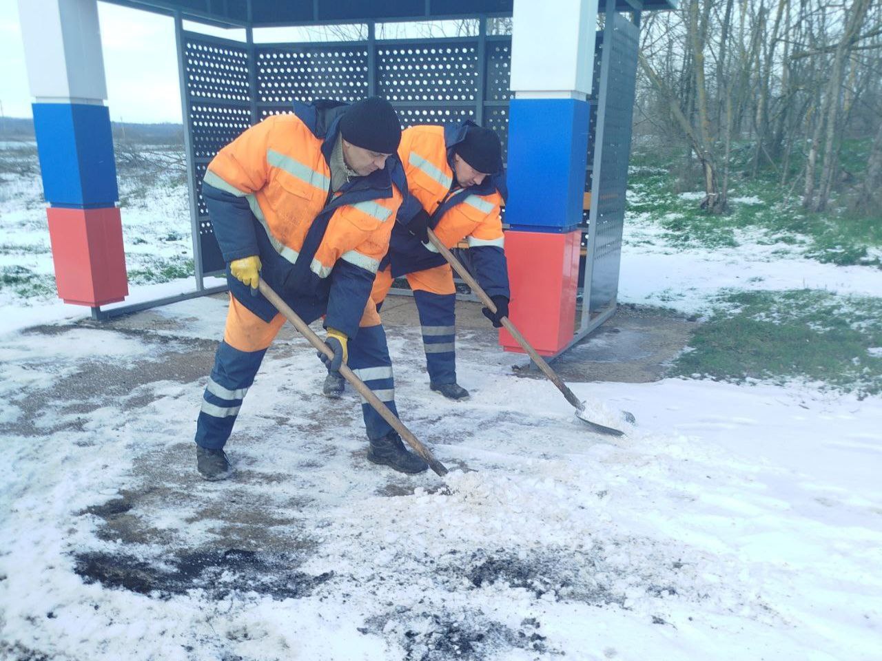 Продолжаем мероприятия в рамках зимнего содержания - в минувшие сутки обеспечивали противогололедную обработку на дорогах общего пользования, а также очистку от снега территории остановочных павильонов