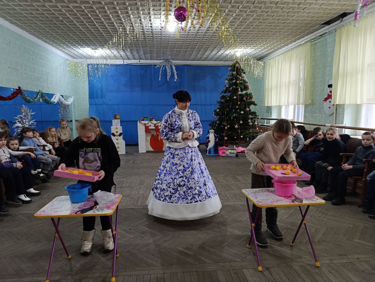 3 января в МБУ «Клуб им.Кирова г.о.Торез» прошла игровая программа для детей «Забавы у новогодней елки!». Основной целью, было создание праздничного настроения у детей. В ходе мероприятия ребята окунулись в весёлую и дружескую атмосферу.