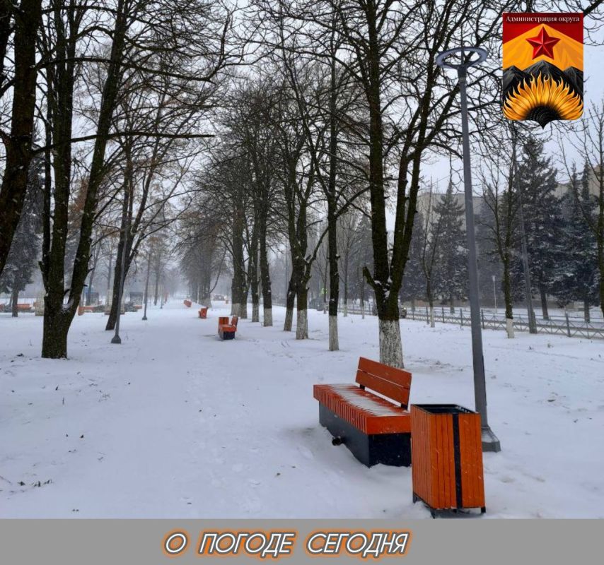 В Шахтерском округе переменная облачность, ожидается мокрый снег, порывы ветра до 10 метров в секунду.