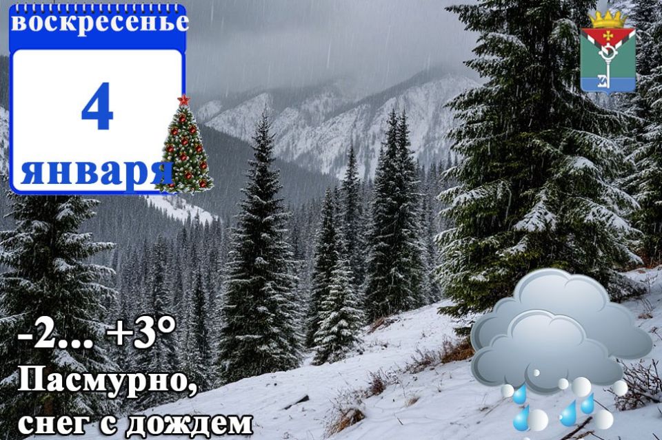 Мокрый снег, дождь, местами сильные, налипание мокрого снега, гололед, гололедица на дорогах, порывы ветра до 20 м/с в ДНР, по акватории Азовского моря мокрый снег, дождь, порывы ветра до 20 м/с ожидаются 4 января.