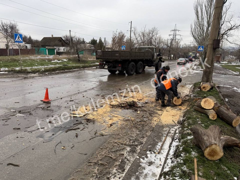 Сегодня сотрудники коммунального предприятия «Зелёное строительство» занимались расчисткой тротуаров от снега и наледи, а также устраняли последствия непогоды, распиливая и убирая упавшие деревья.