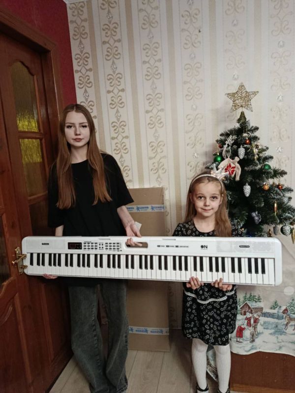 13-летняя Виталина из Волновахи мечтала о цифровом пианино. Теперь у девочки есть современный синтезатор, который станет отличным помощником в развитии музыкальных способностей. Её младшая сестра София получила в подарок детскую шведскую стенку и сможет тренироваться дома.