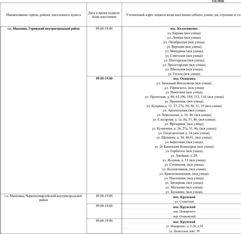Диспетчерская служба информирует: Сегодня, 22.01.2026г., восстановлена подача водоснабжения в г. Волноваха, пер. Энергетический 1,3,7. Ремонтные работы завершены.// Диспетчерская служба ГО и ЧС Волноваха