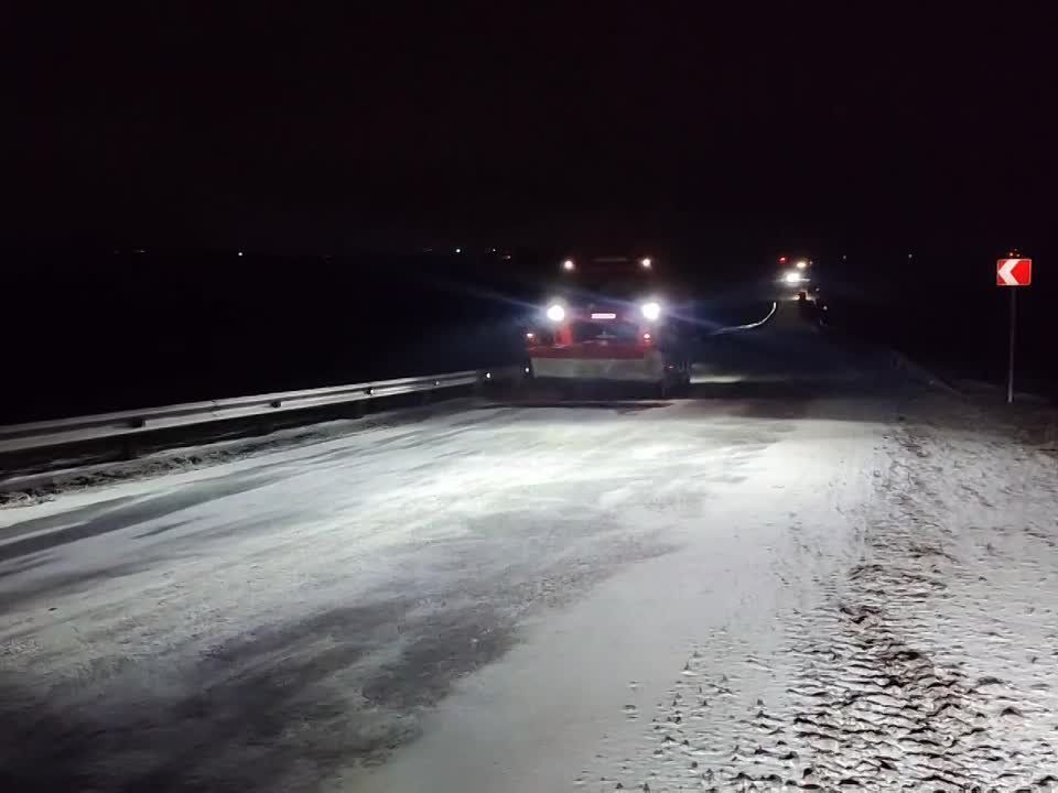 Касьяновка: дождь, покрытие мокрое, местами гололёд. Ведётся противогололедная обработка опасных участков ПСС.