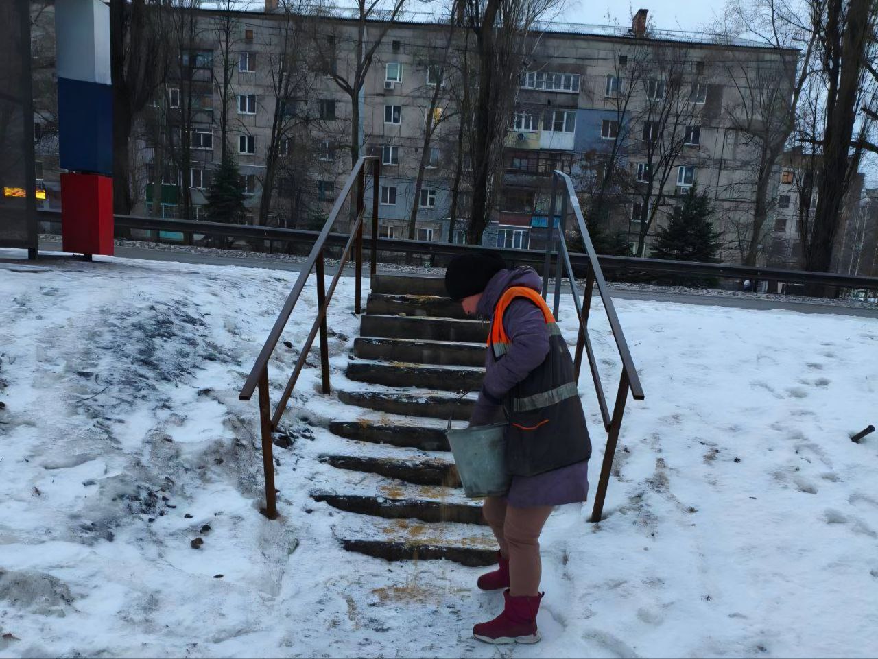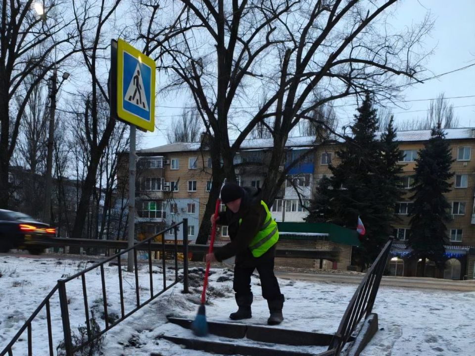 Силами Шахтерского участка Единого регионального фонда по управлению многоквартирными домами выполняется расчистка и посыпка противогололедным материалом пешеходных переходов по улице Ленина, мкр. Журавлевка.