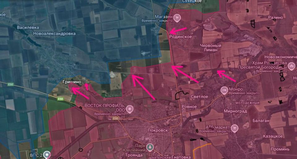 В северной части Покровска продолжается зачистка. Здесь ВСУ постоянно заскакивают двойками-тройками с целью зацепиться за окраины. Севернее самого города наши штурмовики продолжают увеличивать зону контроля;
