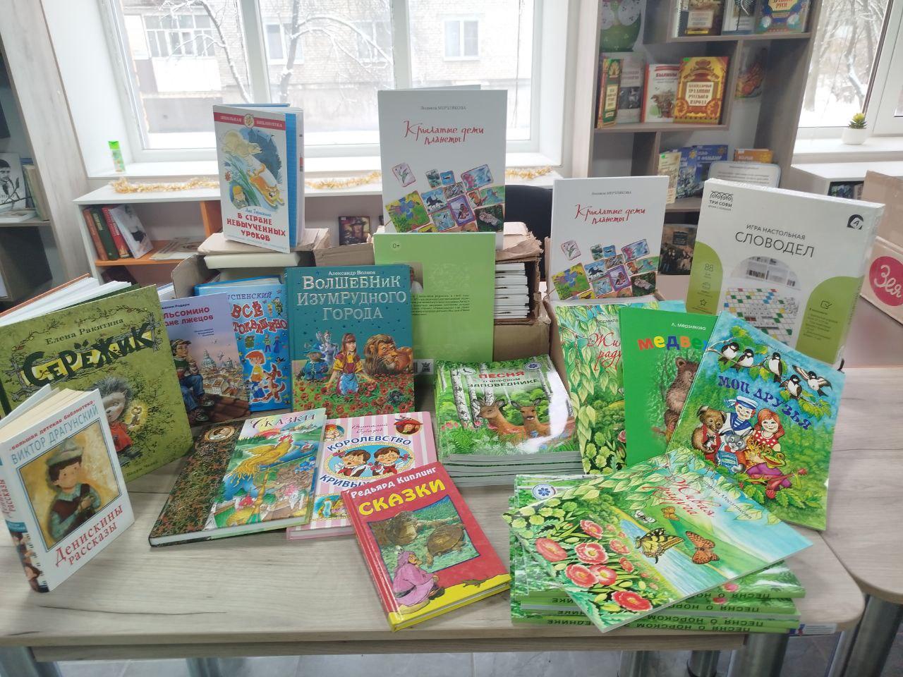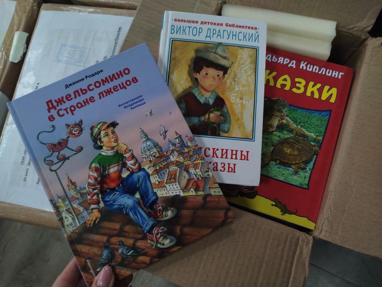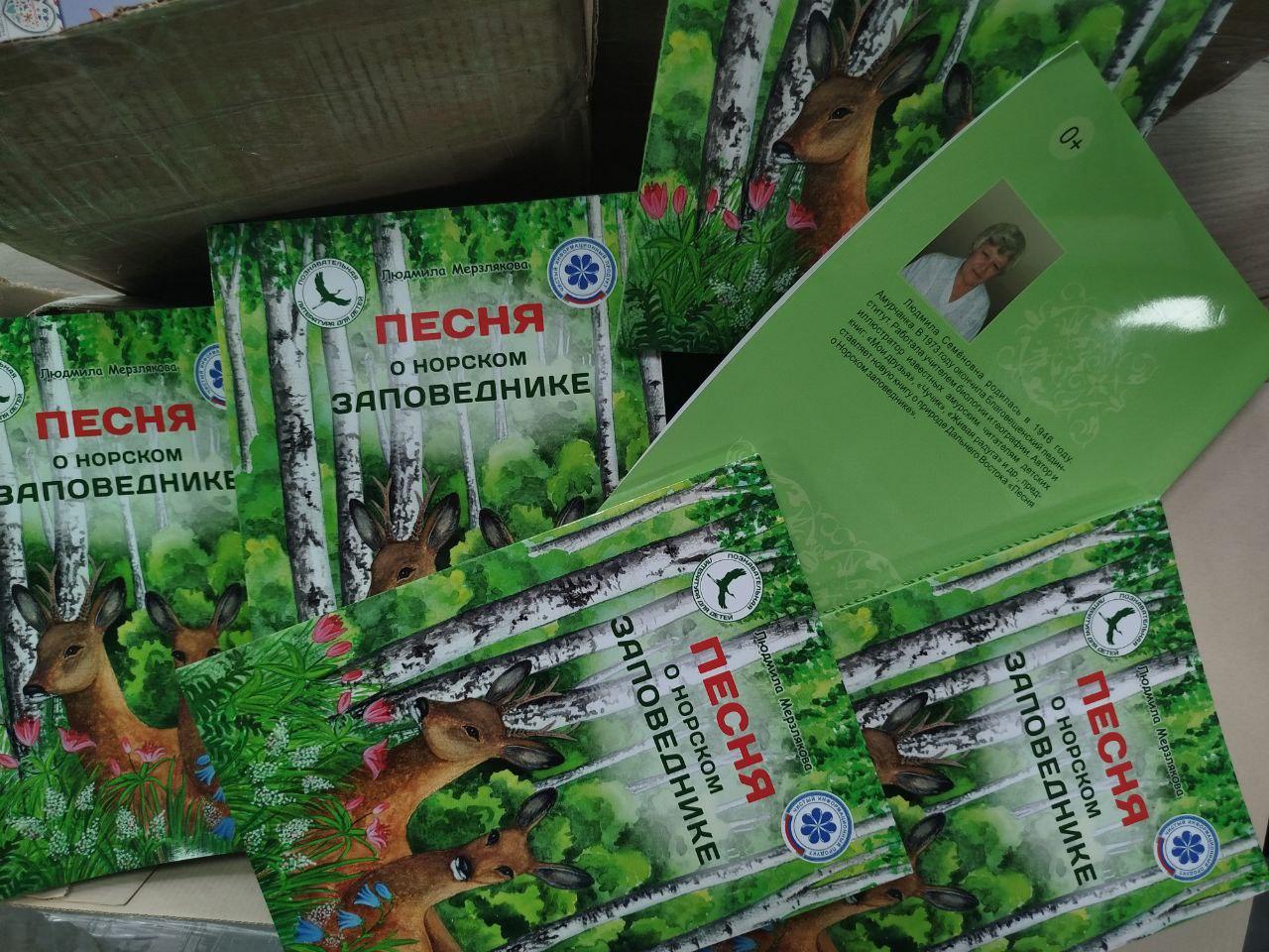 В посылке коллеги из Приамурья прислали по 24 экземпляра книг амурского автора Людмилы Мерзляковой «Крылатые дети планеты» и «Песня о Норском заповеднике», а также пазлы, созданные по этим произведениям, настольная игра «Словодел» и книги других авторов.
