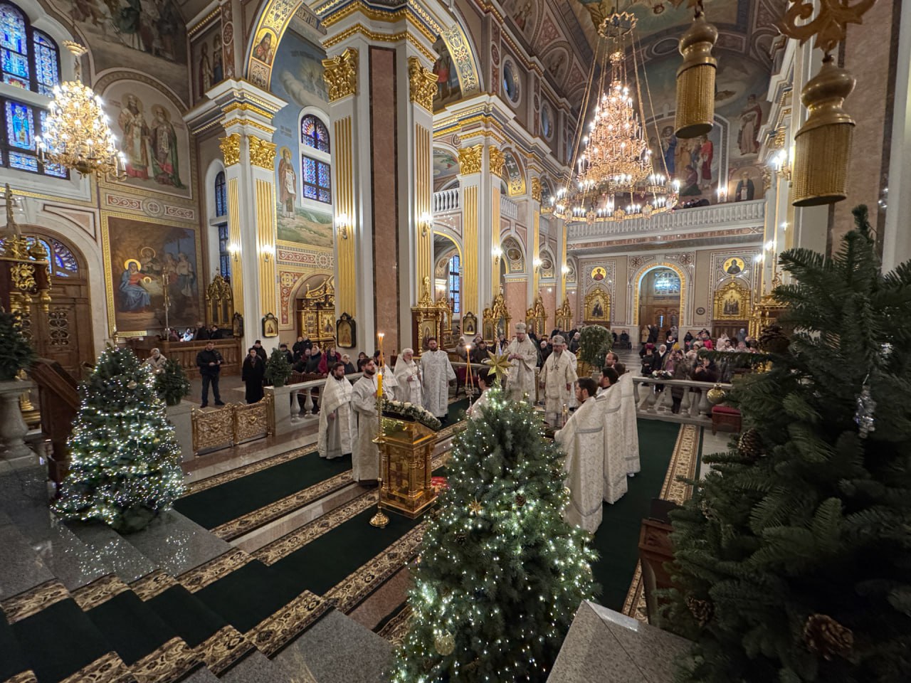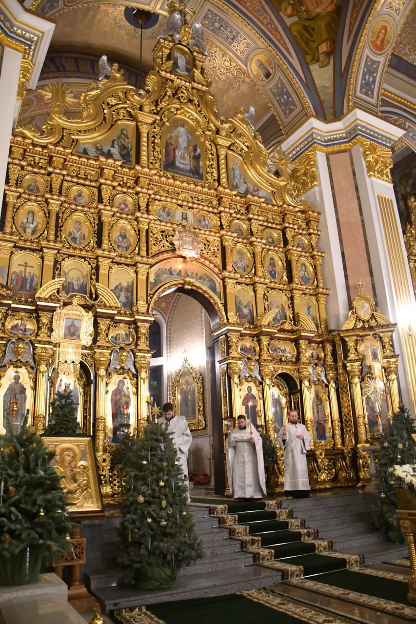 Рождественское богослужение уже началось в Спасо-Преображенском кафедральном соборе Донецка.