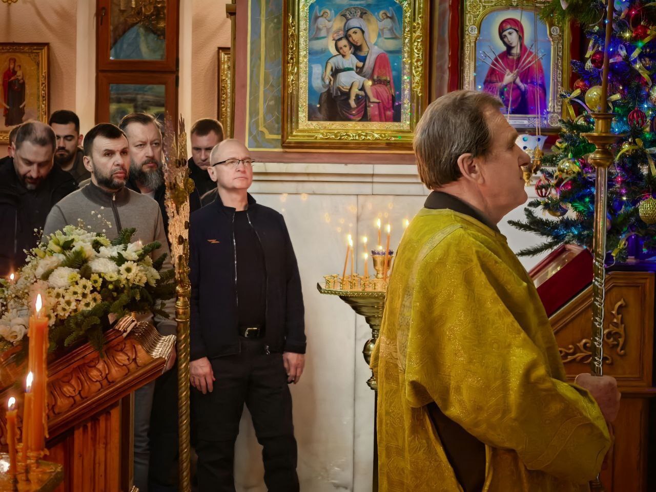 С первым заместителем Руководителя Администрации Президента Сергеем Кириенко на праздничном богослужении в храме Рождества Христова города Донецка.