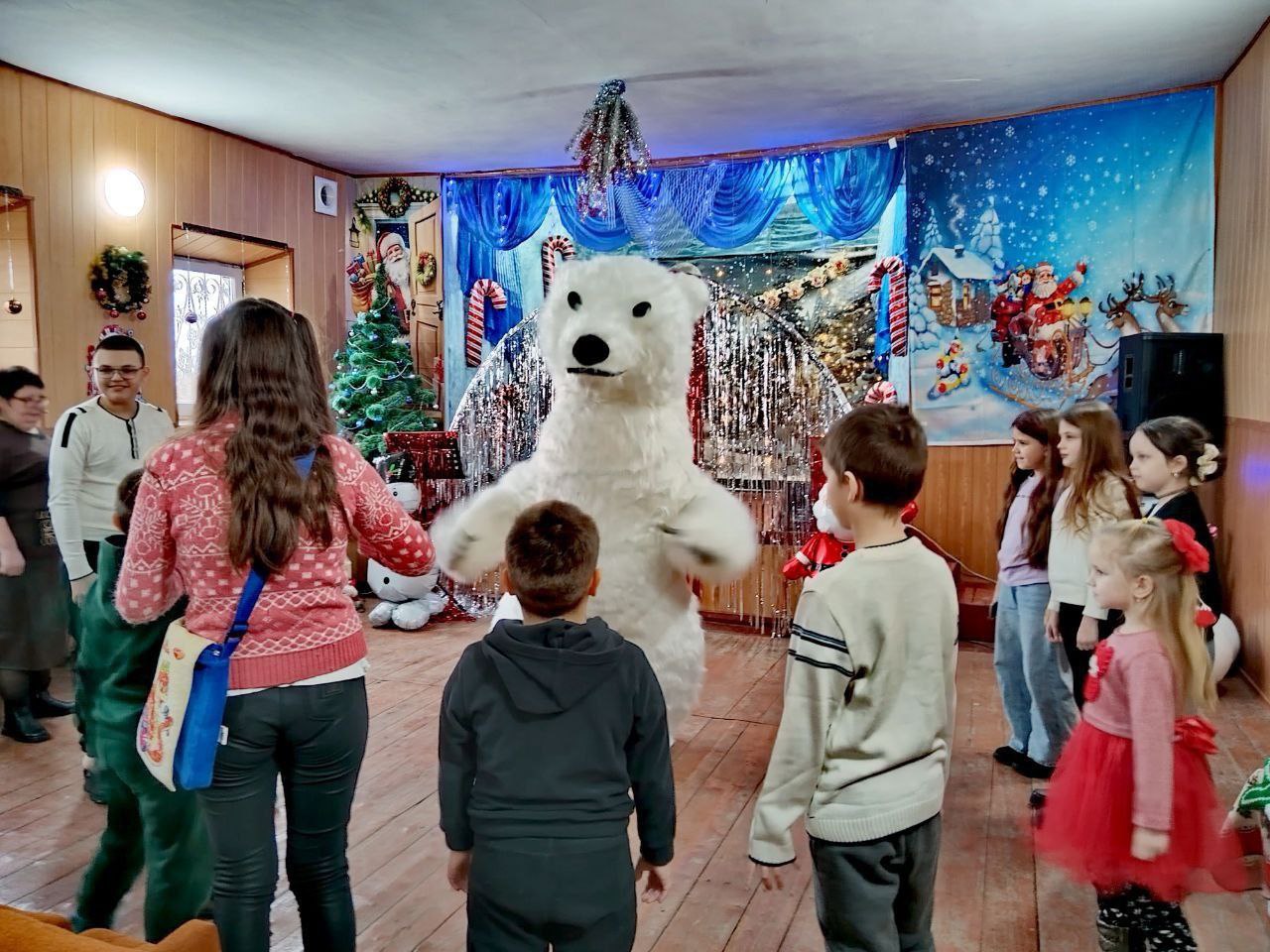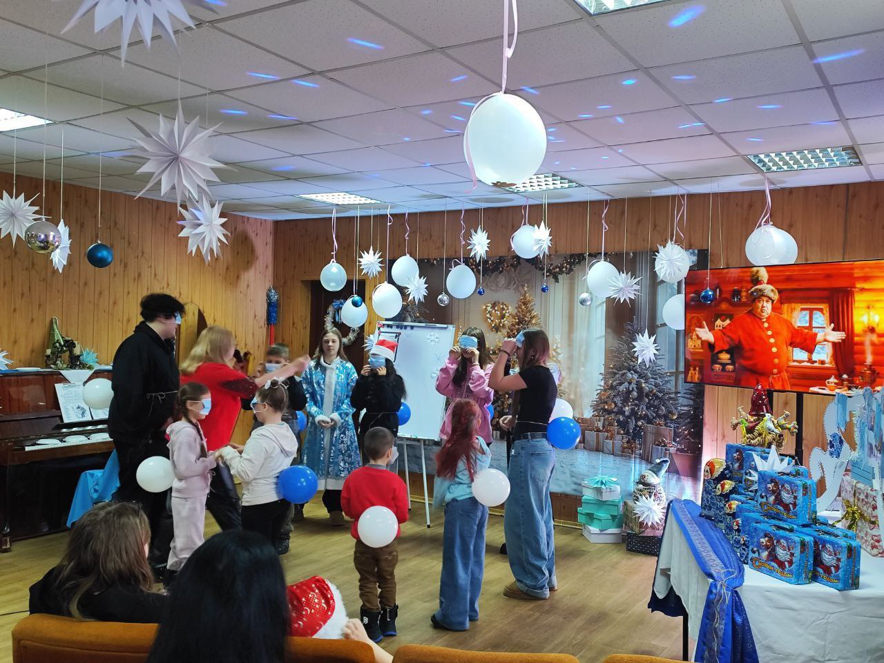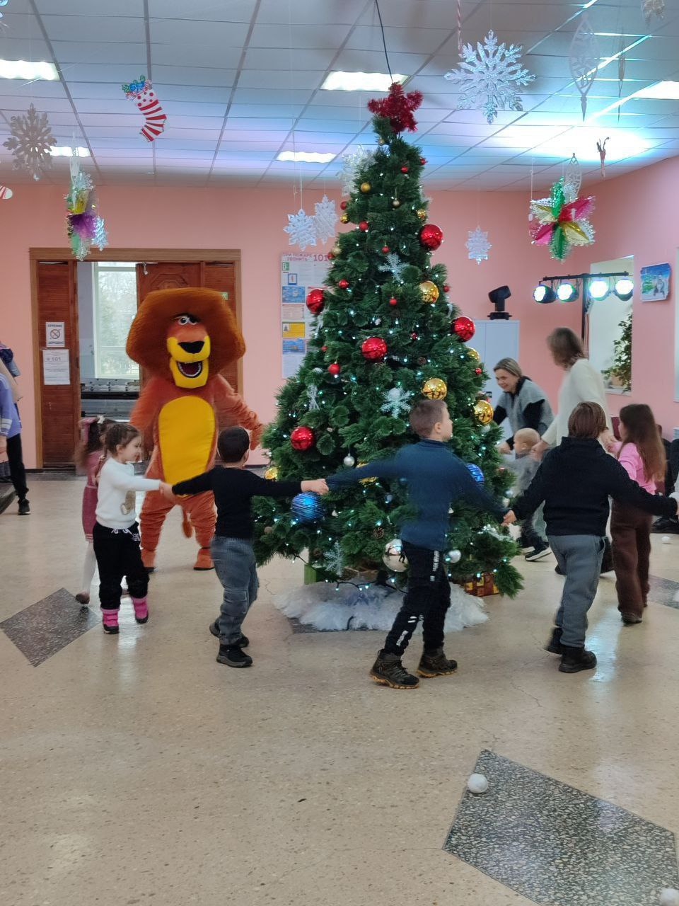 В Новоазовском культурно-досуговом центре прошла программа «Рождественские забавы». Ведущая Зима организовала игры и танцы. Неожиданно появился Лев Алекс, который развлекал детей вокруг ёлки. Праздник завершился подарками и просмотром мультфильма.