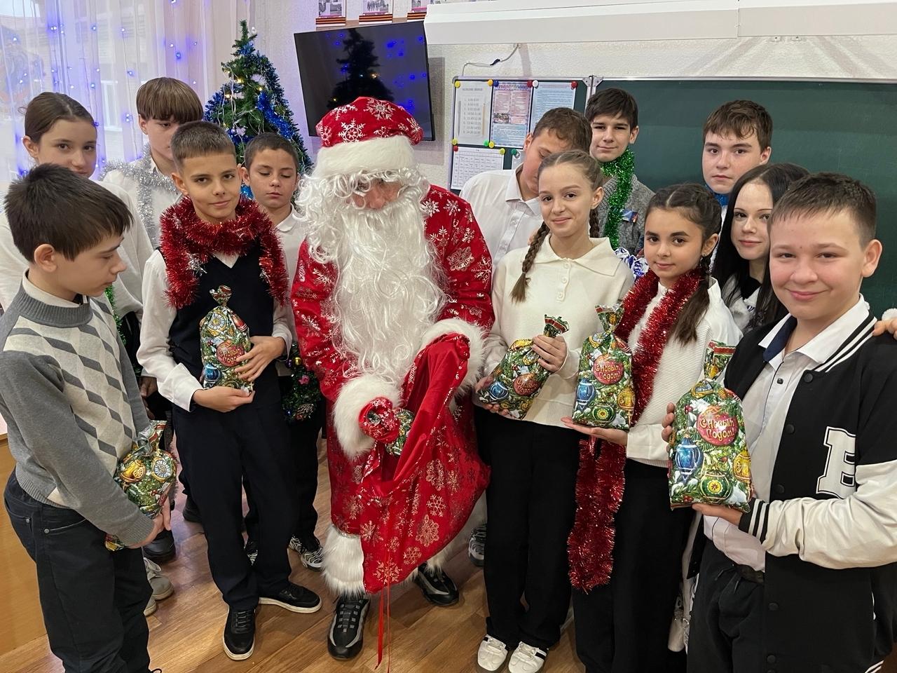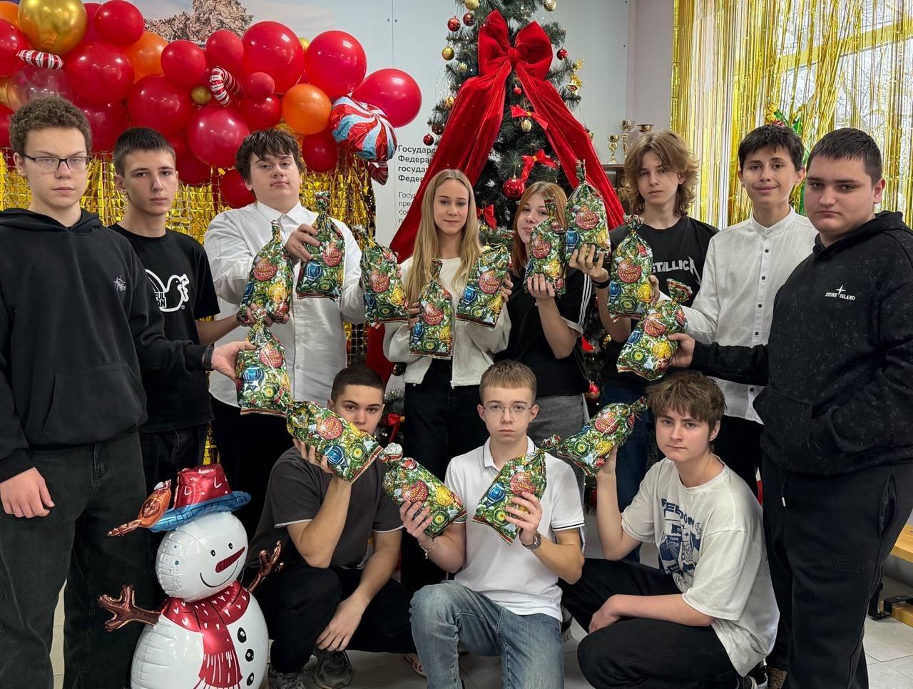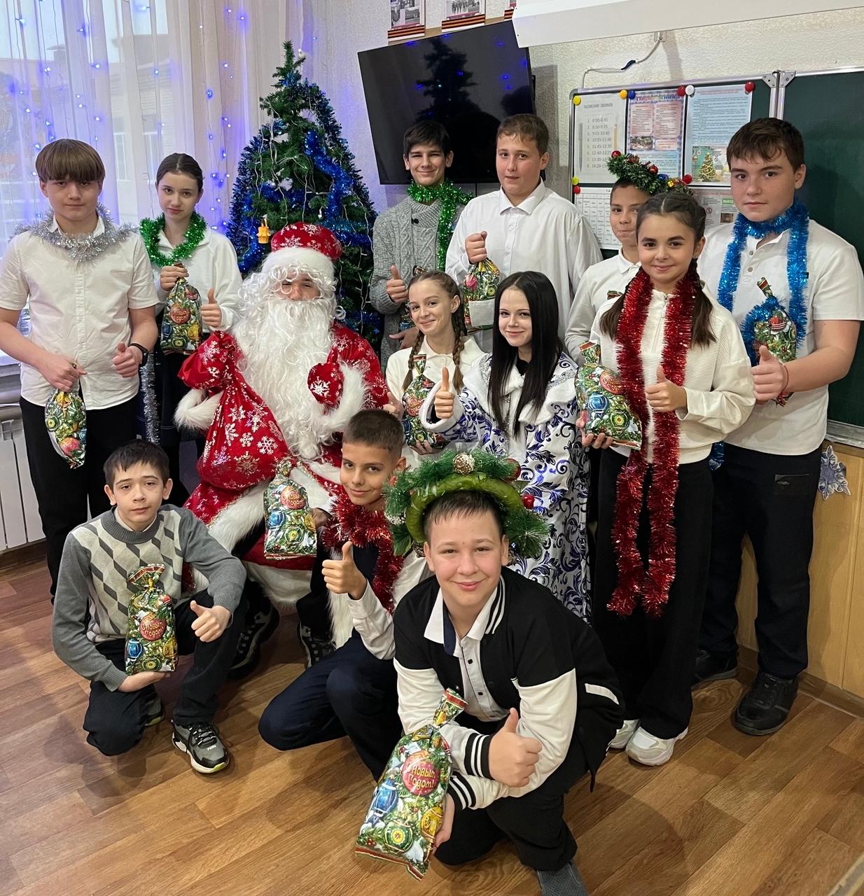 Сладкие новогодние наборы ребятам вручили на праздничных мероприятиях в школах. Особое внимание было уделено тем, кто обучается на дому: для них организовали персональные поздравления, чтобы никто не остался без внимания и праздничного настроения.
