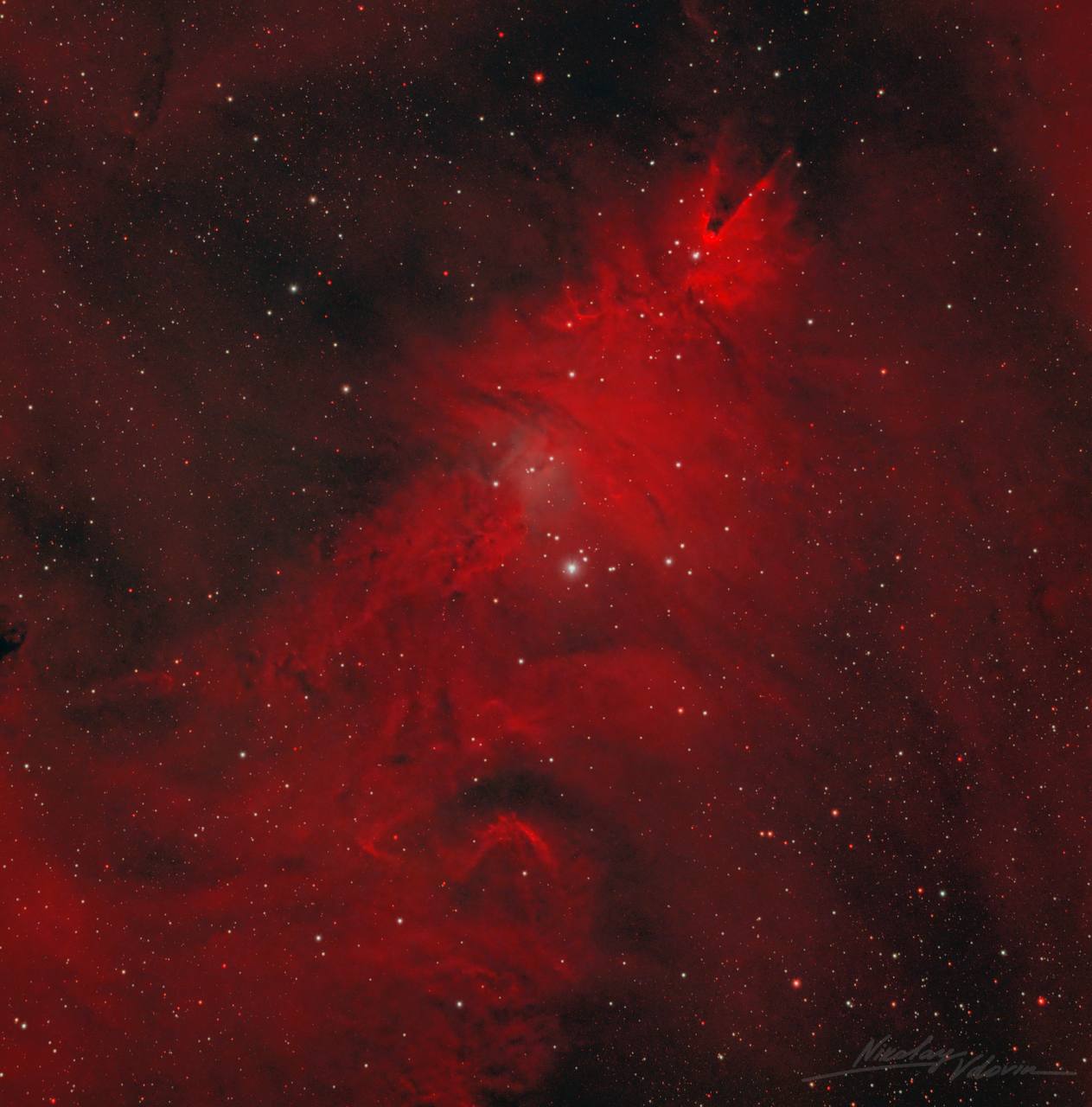 Она включает в себя Коническую туманность (форма маленькой перевернутой ёлки вверху кадра) и туманность «Лисий мех» в середине этого объекта.