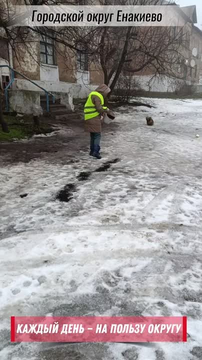 Сотрудники коммунальных служб продолжают противогололёдную посыпку придомовых территорий и тротуаров.