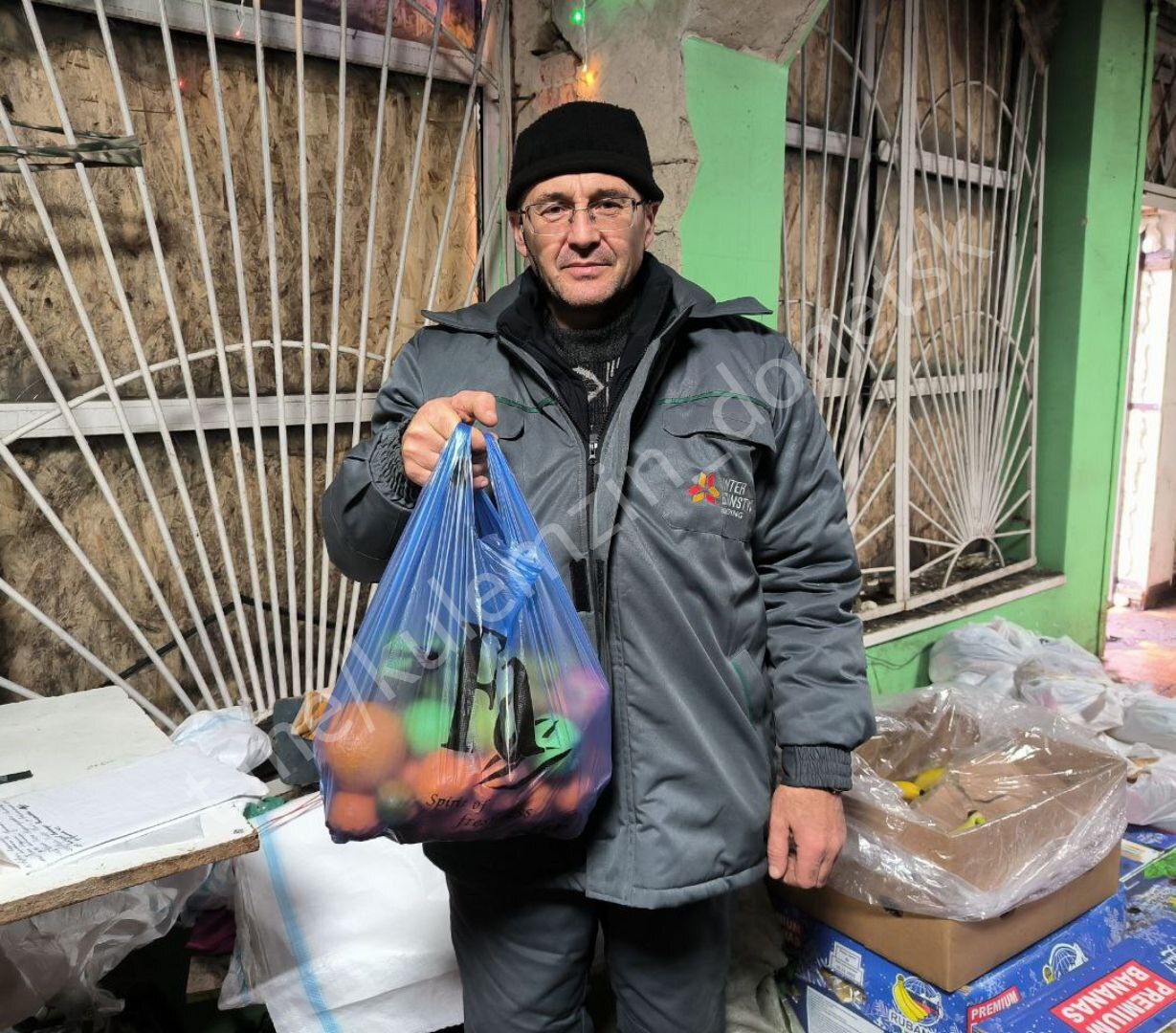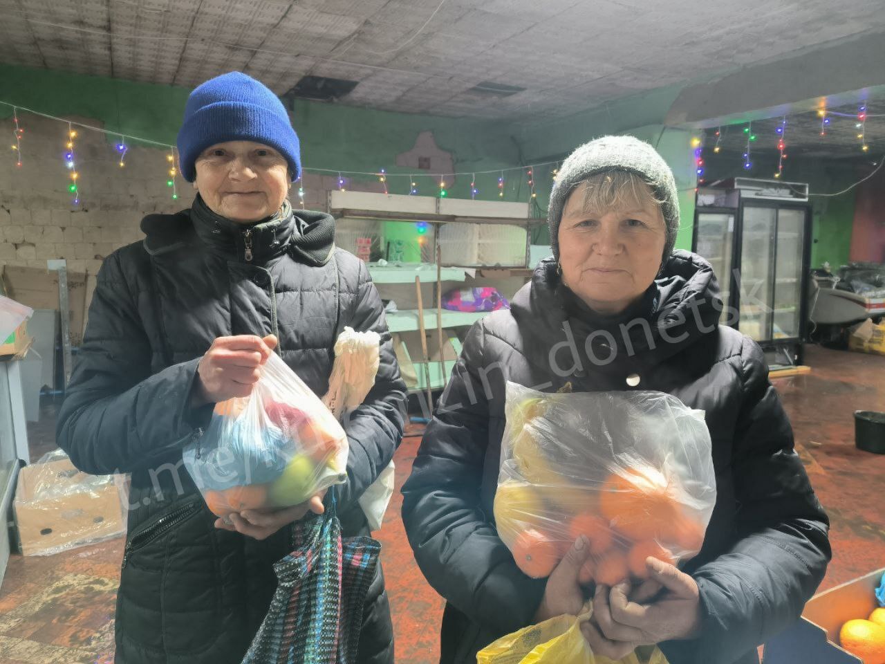 Администрация городского округа Донецк поздравила с Рождеством Христовым жителей пгт Великая Новосёлка и передала им свежие фрукты.