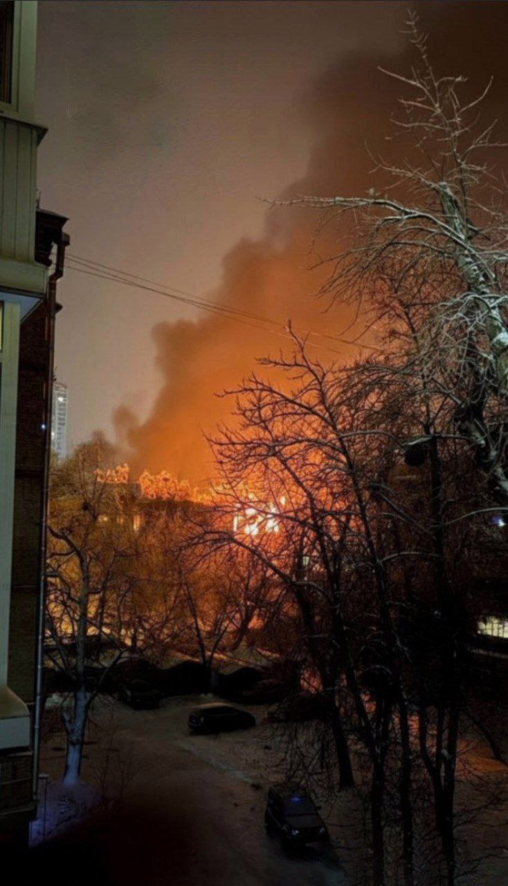В Киеве зафиксирована вторичная детонация и чёрный дым после прилёта по строению в промозоне Соломенского района (фото 1-2).