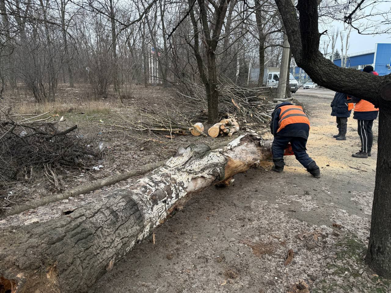 Сегодня, 12 января, сотрудниками МУП АГОД ДНР "ЗЕЛЕНОЕ СТРОИТЕЛЬСТВО Г.ДОНЕЦКА" проведены работы по распилу упавших деревьев в Ленинском внутригородском районе г. Донецка
