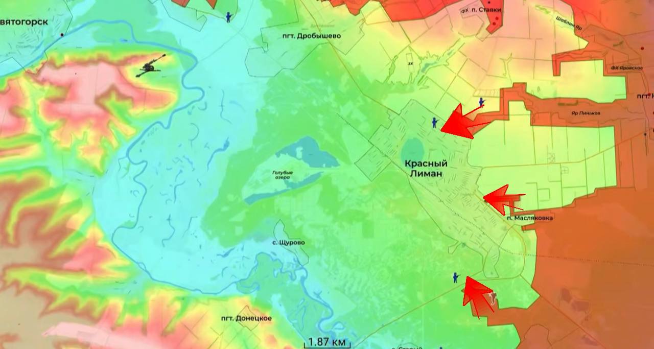 В районе Красного Лимана наши войска расширили территорию у южной его части. Тем самым мы охватываем город с юго-запада и юго-востока.