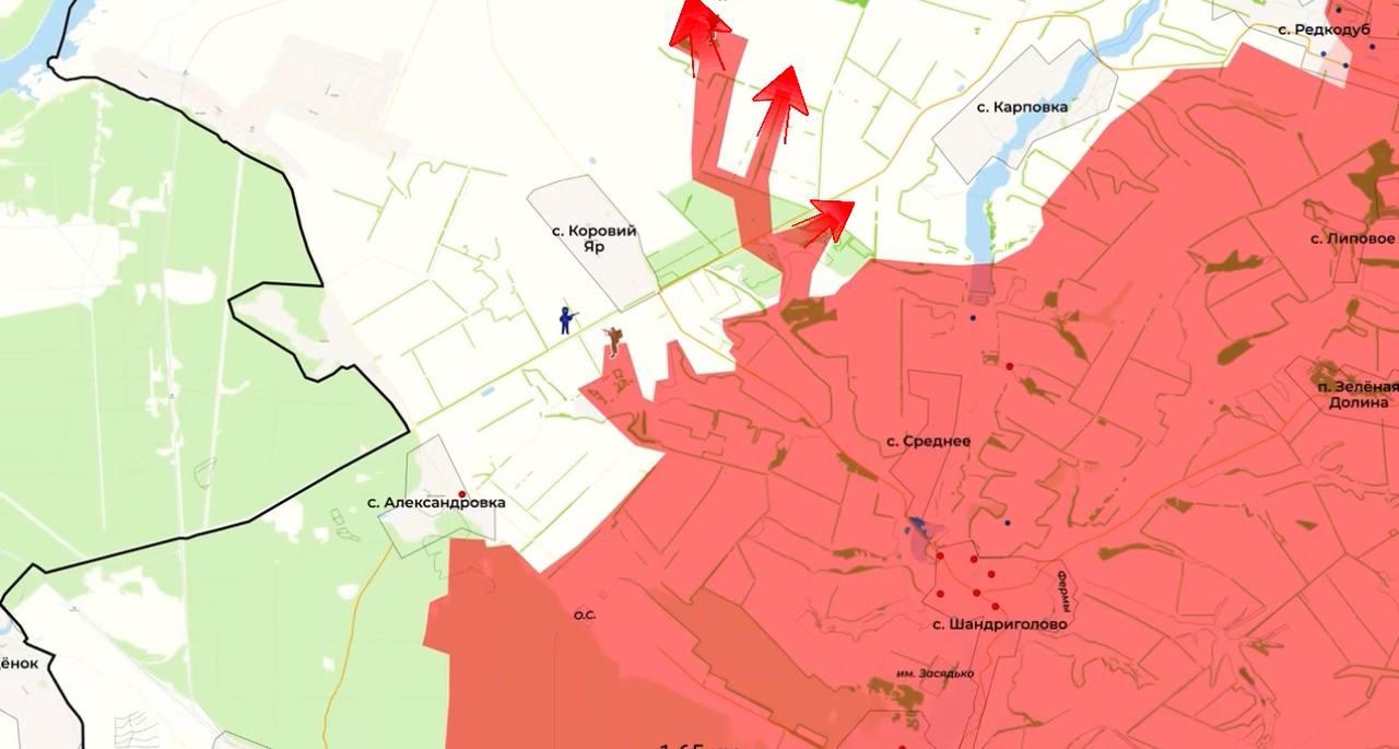 Севернее от Карповки наши войска продолжают наступление на Волчий Яр и перерезали основную логистику ВСУ от Карповки до Коровьего Яра, что и послужило освобождению Редкодуба.