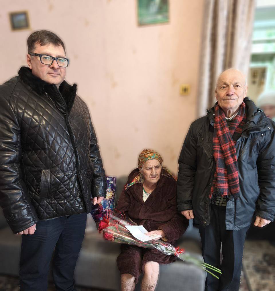 Совместно с председателем Новоазовского совета ветеранов Евгением Владимировичем Пригоровским поздравили с 95-летием Татьяну Трофимовну Ермолаеву, жительницу поселка Седово.