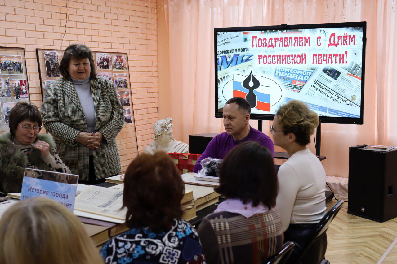 13 января в Ясиноватском музее прошёл «круглый стол» ко Дню российской печати. Мероприятие началось презентацией выставки периодических изданий прошлых лет «История города на страницах газет». На мероприятии присутствовали ВРИП главы администрации города А. М. Пеняев, начальник отдела культуры администрации Л. И. Ищенко, и.о. главного редактора газеты "Ясиноватский вестник ДНР" Н. А. Сайниди, работники музея и библиотек, представители общественности. Александр Михайлович рассказал об информационной важности органов печати для жизни города, основных важных направлениях деятельности администрации, поздравил Нелли Андреевну Сайниди с профессиональным праздником.