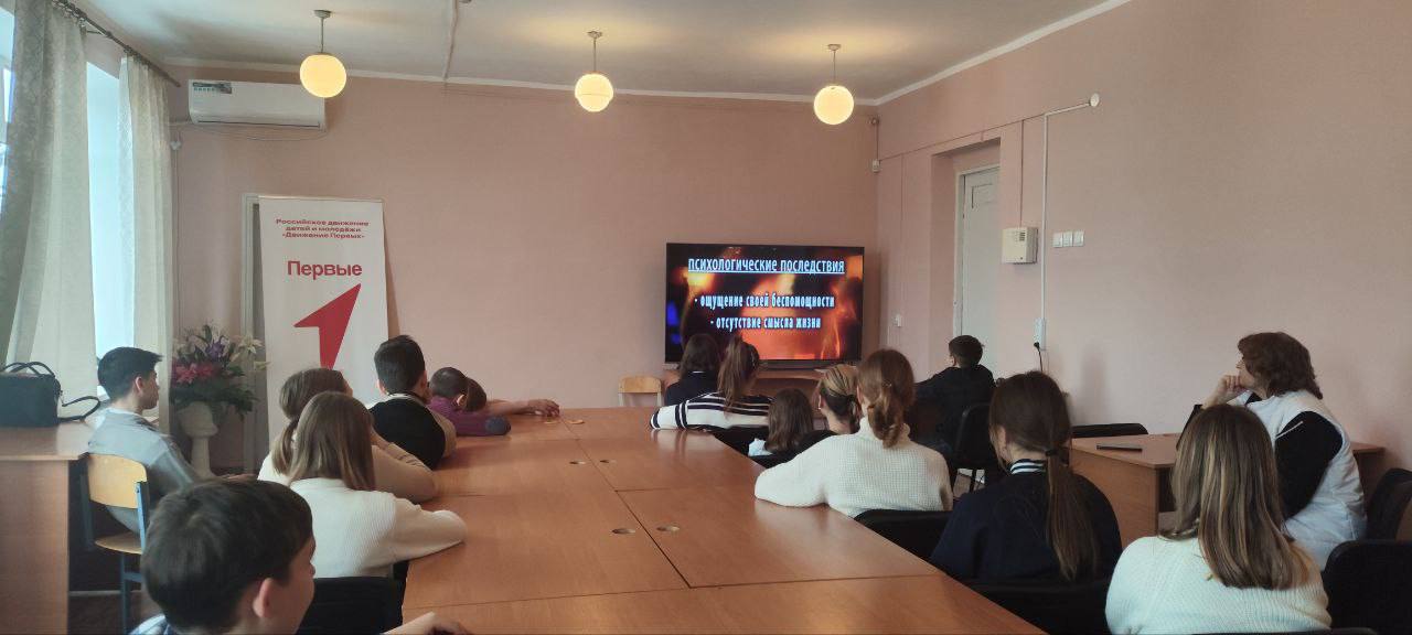 Ребята просмотрели познавательный видеоролик, после которого активно обсуждали, как распознать признаки зависимости от наркотиков, какие последствия могут возникнуть в результате их употребления и какие меры предосторожности следует принимать для предотвращения этой проблемы.
