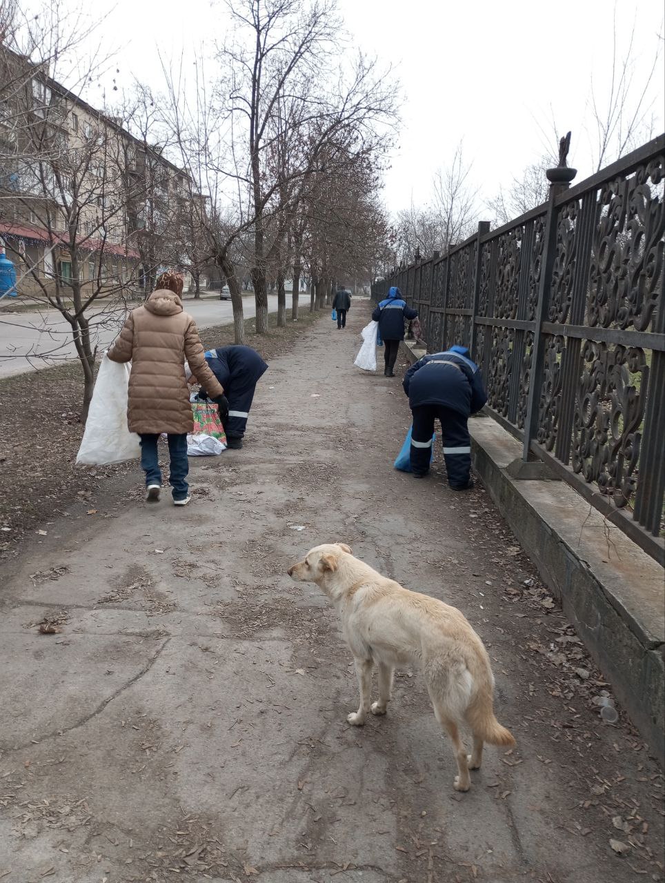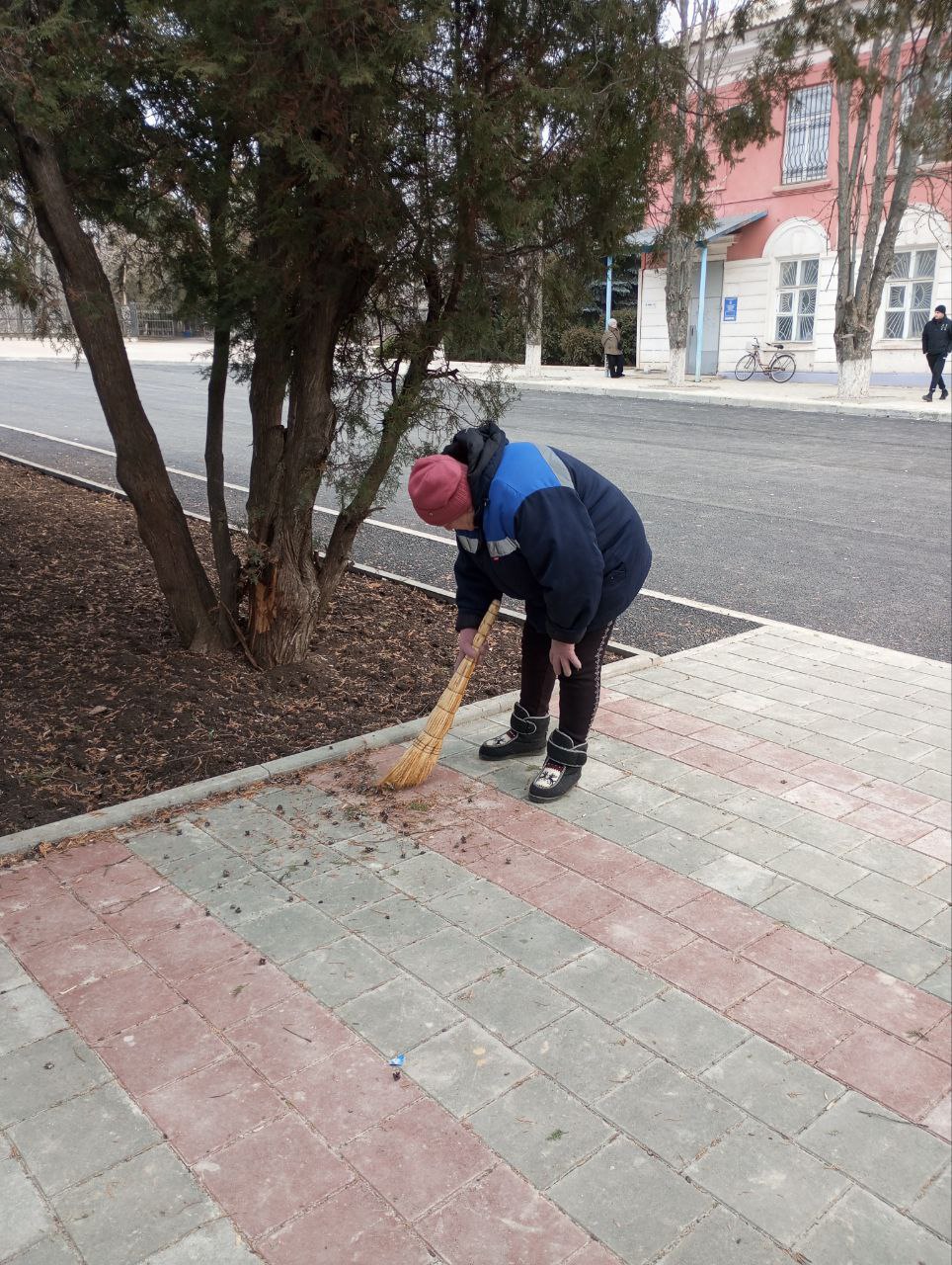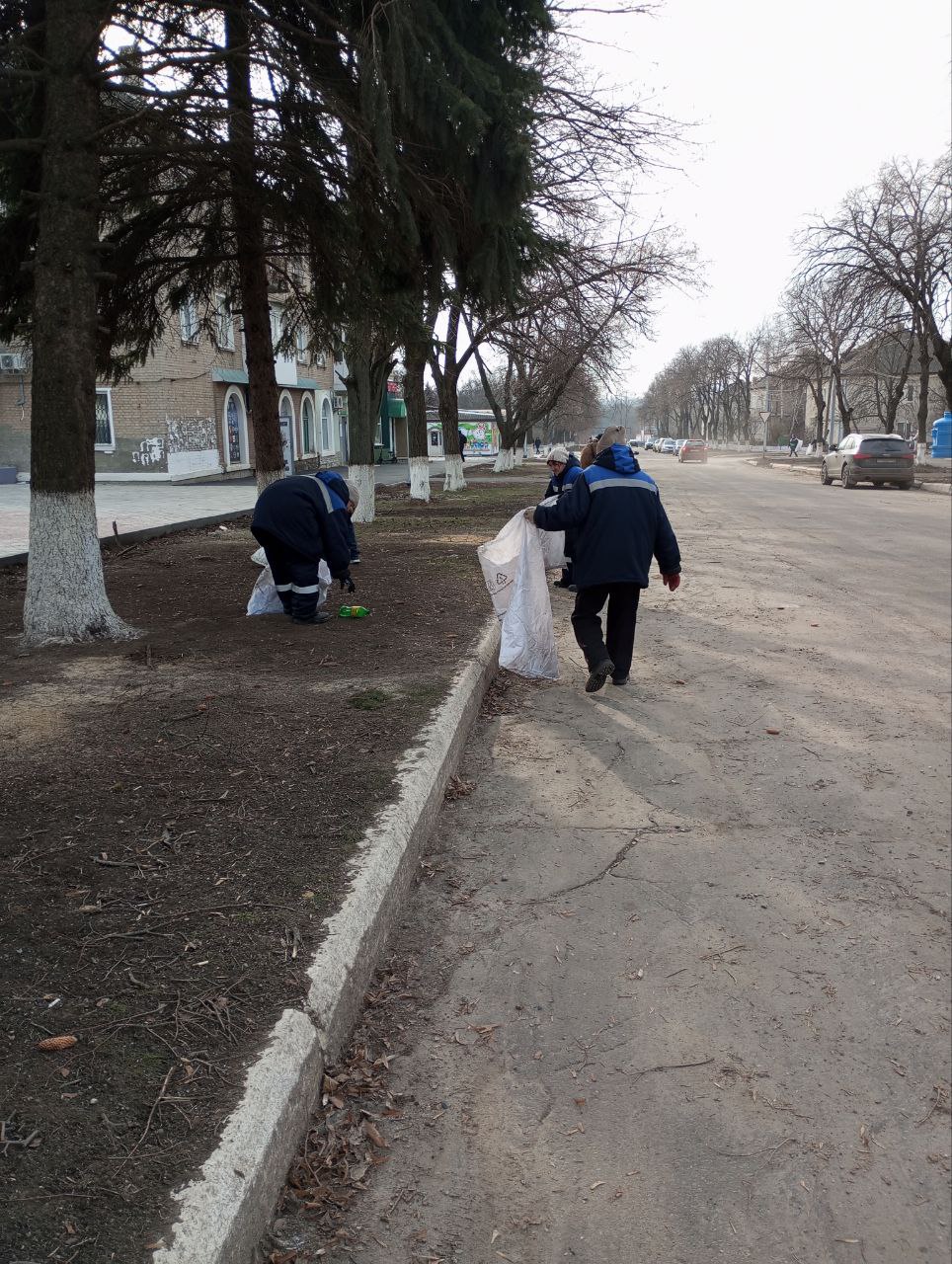 Сотрудники МБУ "Уютный округ" провели уборочные работы в городе Комсомольское: подмели главную площадь города, очистили улицы города от мусора, очистили урны для мусора.