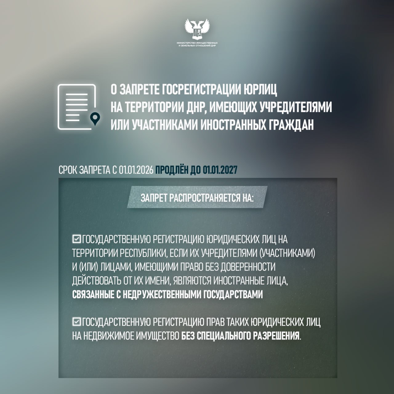 осуществления государственной регистрации связанных с недружественными государствами юридических лиц, имеющих место нахождения на территории ДНР