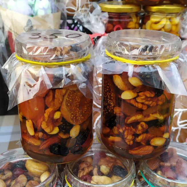 Ассортимент был разнообразным и включал колбасные изделия, сыр, рыбу, мед, яйца и другое.