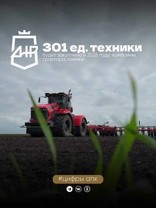 В 2025 году было приобретено 295 единиц техники, а в 2026 году планируется закупить ещё 301 единицу. Это комбайны, тракторы, сеялки. Всё то, от чего зависит эффективность и качество полевых работ.