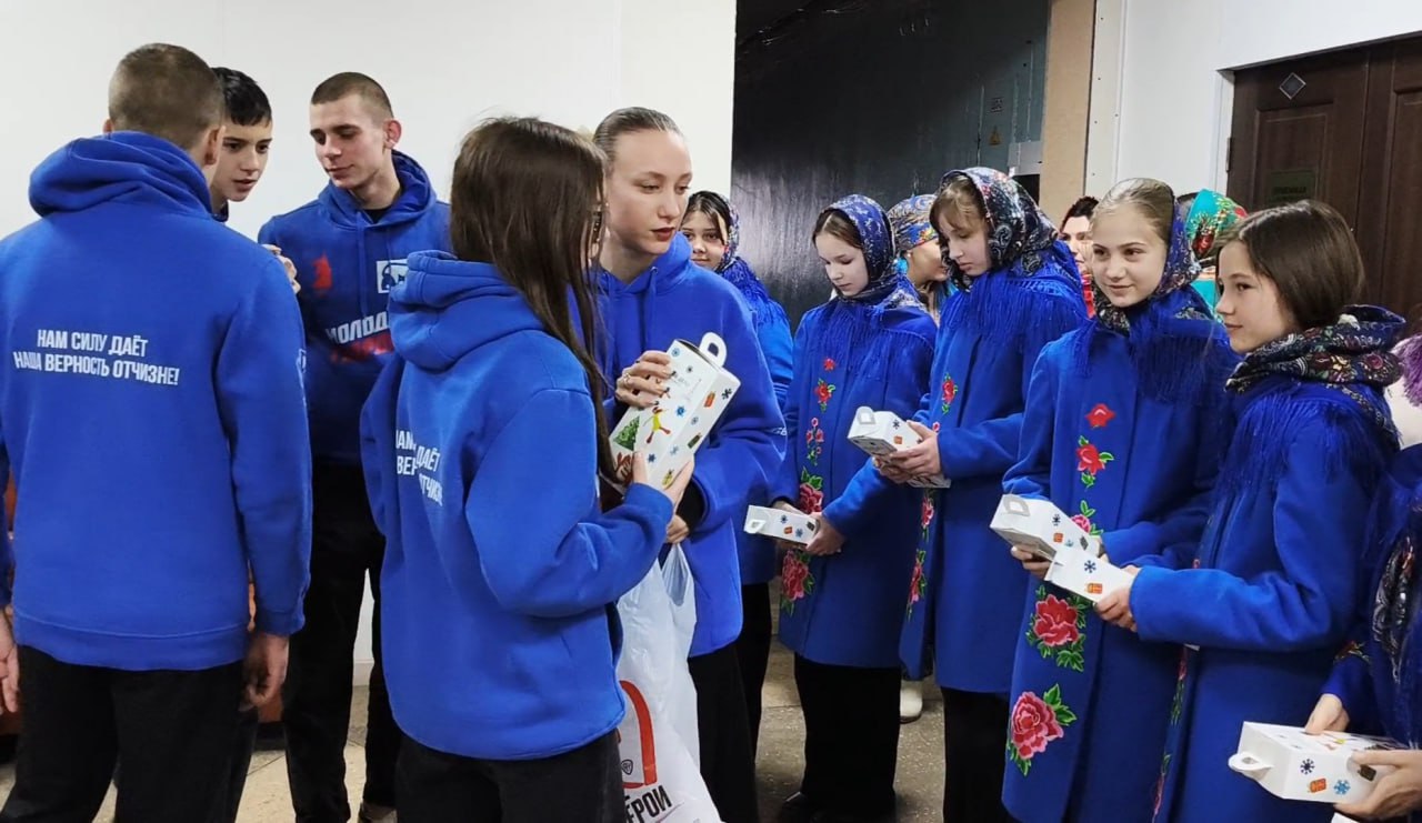 В завершение совместно с сотрудниками администрации вручил коллективу символические сладкие подарки. Активисты «Молодой Гвардии» поддержали инициативу подарив каждому юному участнику коллектива сладкие презенты. Этот добрый жест стал завершением мероприятия, подчеркнув, что истинные традиции — это не только память, но и внимание, забота.