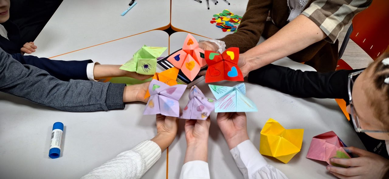 В завершение мероприятия каждый учащийся изготовил популярную некогда игрушку – бумажную гадалку. С ее помощью можно весело провести время с друзьями. Встреча прошла в творческой и позитивной атмосфере.