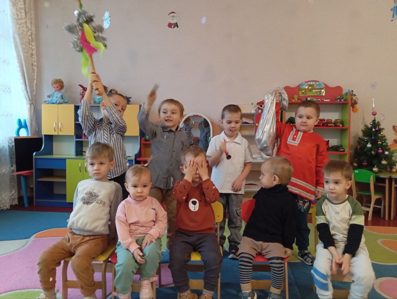 В ГКДОУ10 "Радуга" стало хорошей и доброй традицией проводить колядки и щедровки. Детям очень нравится встречать у себя в гостях колядовщиков - ряженых взрослых и детей, которые посевают пшеницей, при этом желают всем счастья, здоровья, благополучия и хорошего настроения на весь новый год.