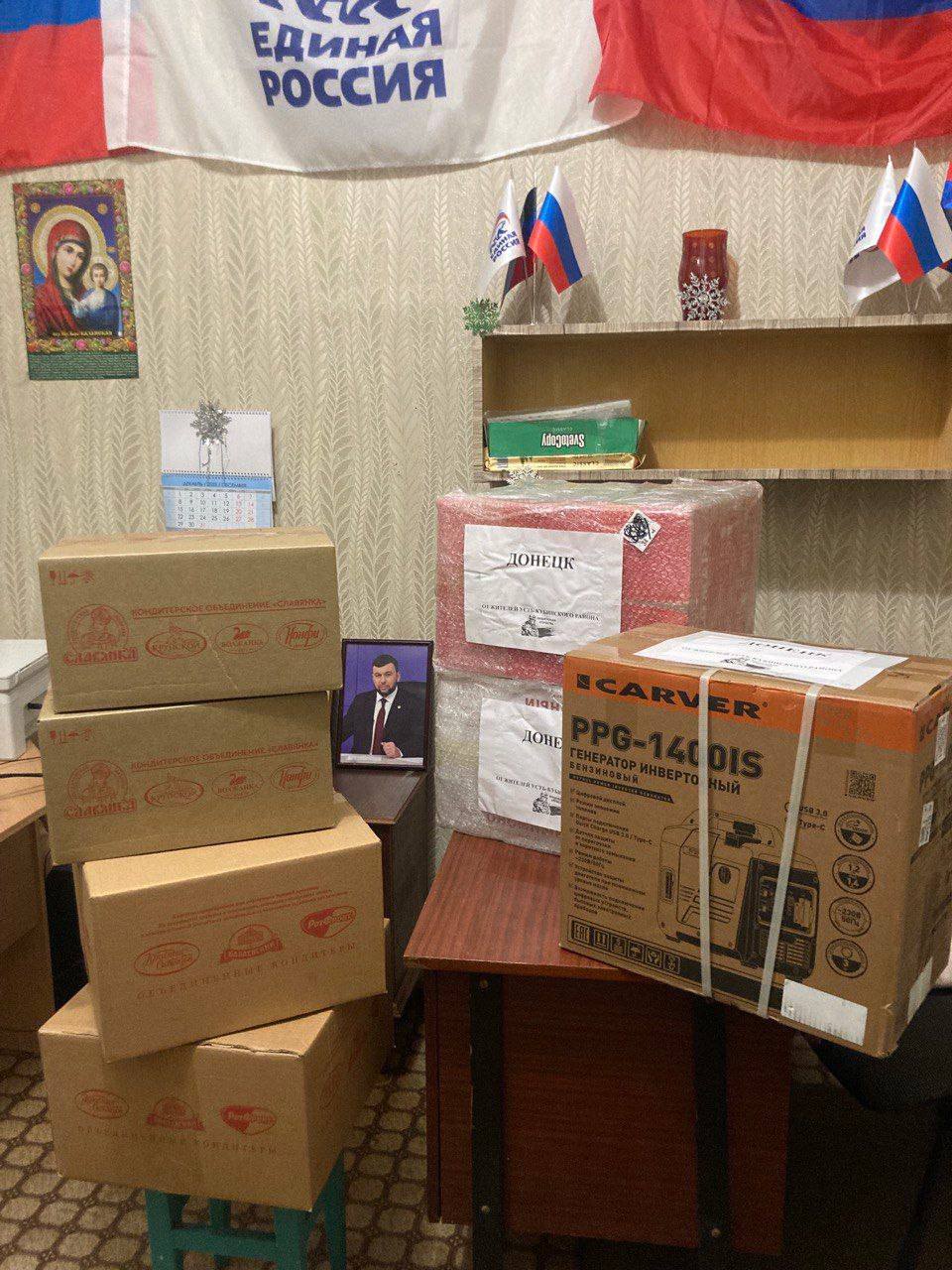 Клавдия Кульбацкая вместе с помощником передали в город Украинск тепловые пушки и инверторный генератор для работы местной приемной отделения партии «Единая Россия», а также сладкие подарки для детей.