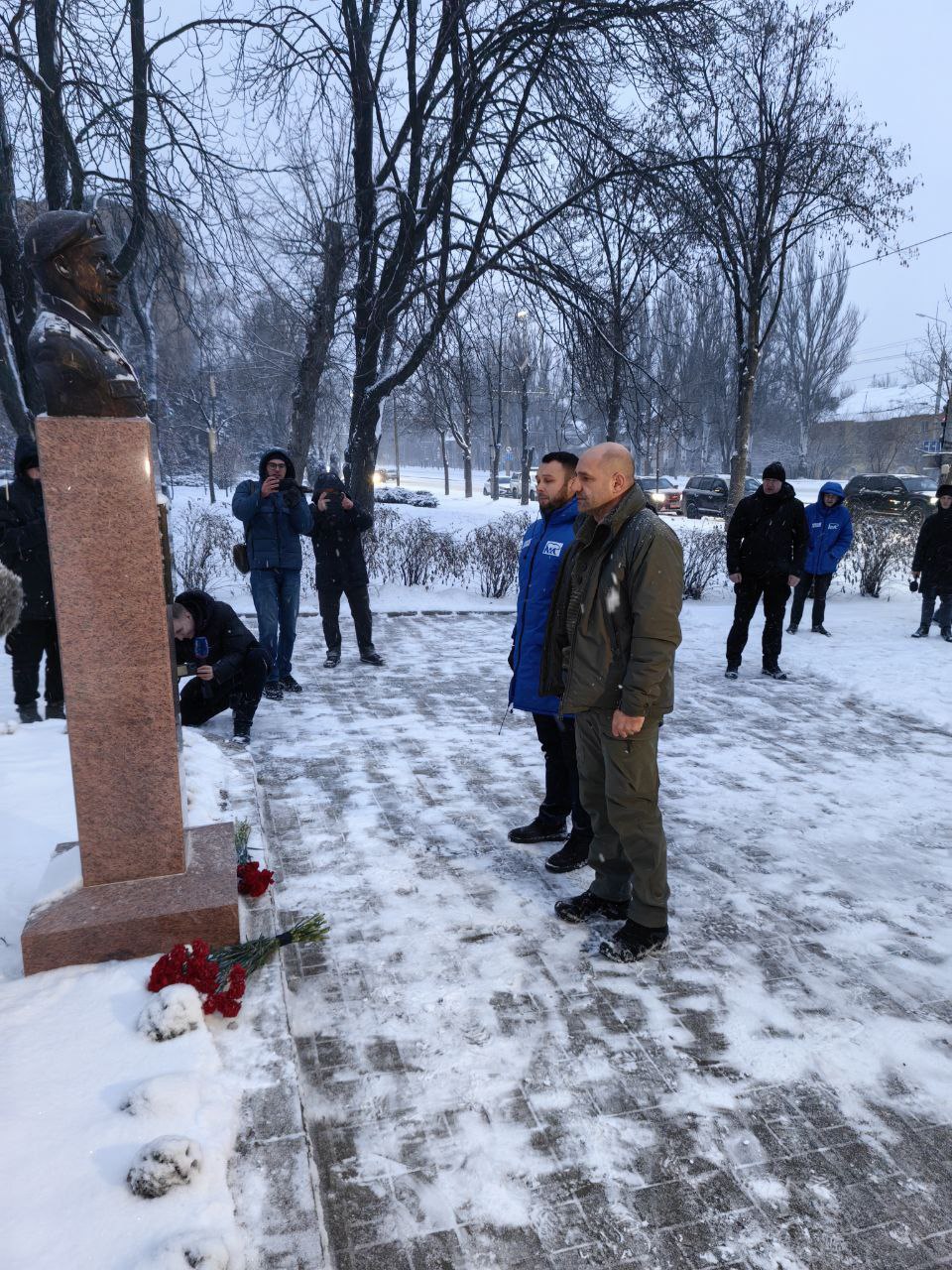 Вместе с "Молодой гвардией Единой России" возложили цветы к мемориалу Защитникам аэропорта и к памятнику Герою ДНР, первому командиру разведывательного батальона "Спарта", моему наставнику Арсену Павлову.