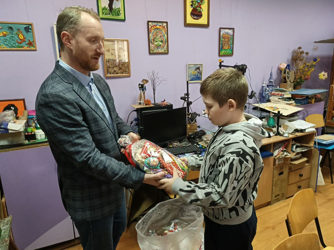 Депутат Народного Совета ДНР от фракции КПРФ Станислав Ретинский вручил новогодние подарки воспитанникам студии детской мультипликации донецкого Дворца детского и юношеского творчества.
