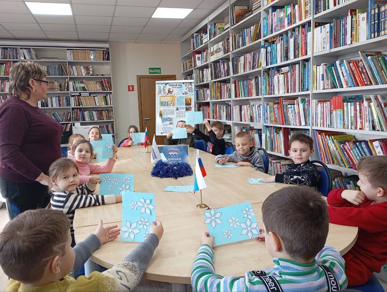 14 января в Мангушской поселковой библиотеке состоялось творческое занятие для воспитанников группы «Калинка» детского сада «Алиса». Мероприятие «Снежинка кружевная — посланница Зимы» было посвящено зимней тематике и развитию творческих способностей у детей.