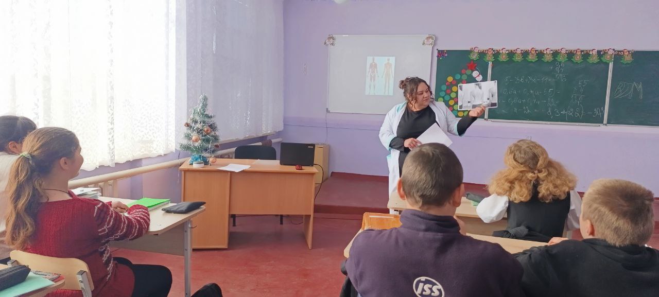 В рамках штаба по жизнеобеспечению Тельмановского округа медсестра кабинета по оказанию медицинской помощи несовершеннолетним Новоселовского ФП провела беседу с учащимися на тему: "Профилактика сколиоза и плоскостопия"