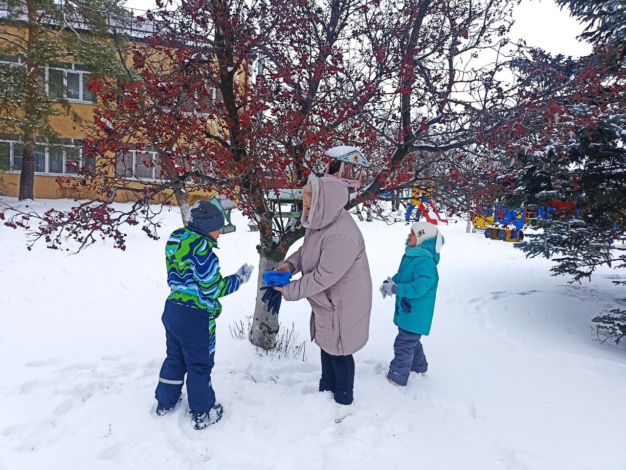Воспитанники детского сада № 22 продолжают участвовать в социальной экологической акции «Покормим птиц зимой» — проекте «Птичья столовая».