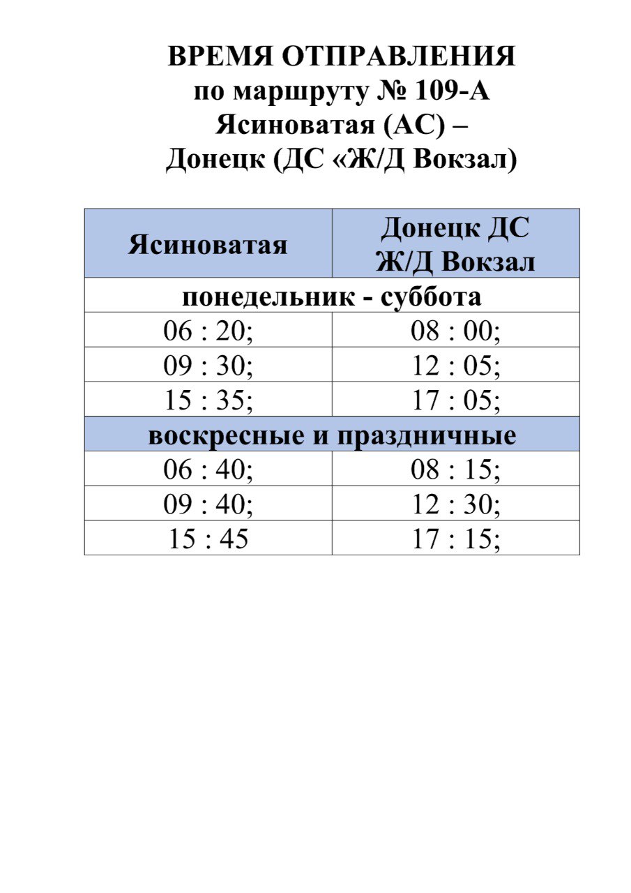 Перевозки по межмуниципальному маршруту регулярных перевозок № 109 "Ясиноватая (АС) - Донецк (ДС "ЖД Вокзал)" будут осуществляться ГУП ДНР "ДОНБАССКАЯ ТРАНСПОРТНАЯ КОМПАНИЯ" с 20.01.2026.