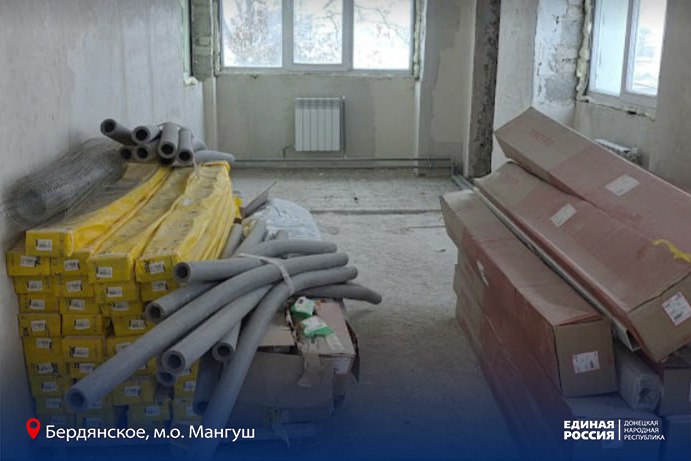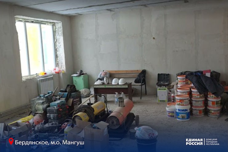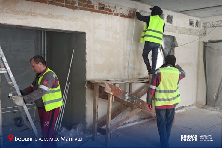 В селе Бердянское Мангушского муниципального округа по народной программе Единой России и партийному проекту «Дети Донбасса» производят ремонт детского сада «Дюймовочка». Восстанавливают объект специалисты шефа-региона Нижегородской области.