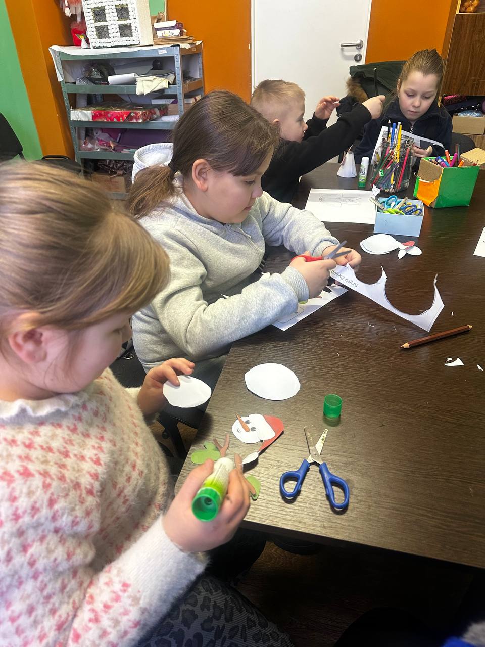 В процессе работы царила дружеская атмосфера. Дети веселились, обсуждали свои идеи и помогали друг другу, что создало дух сотрудничества. В конце мероприятия к ребятам в гости пришел настоящий Снеговик и подарил хорошее настроение.