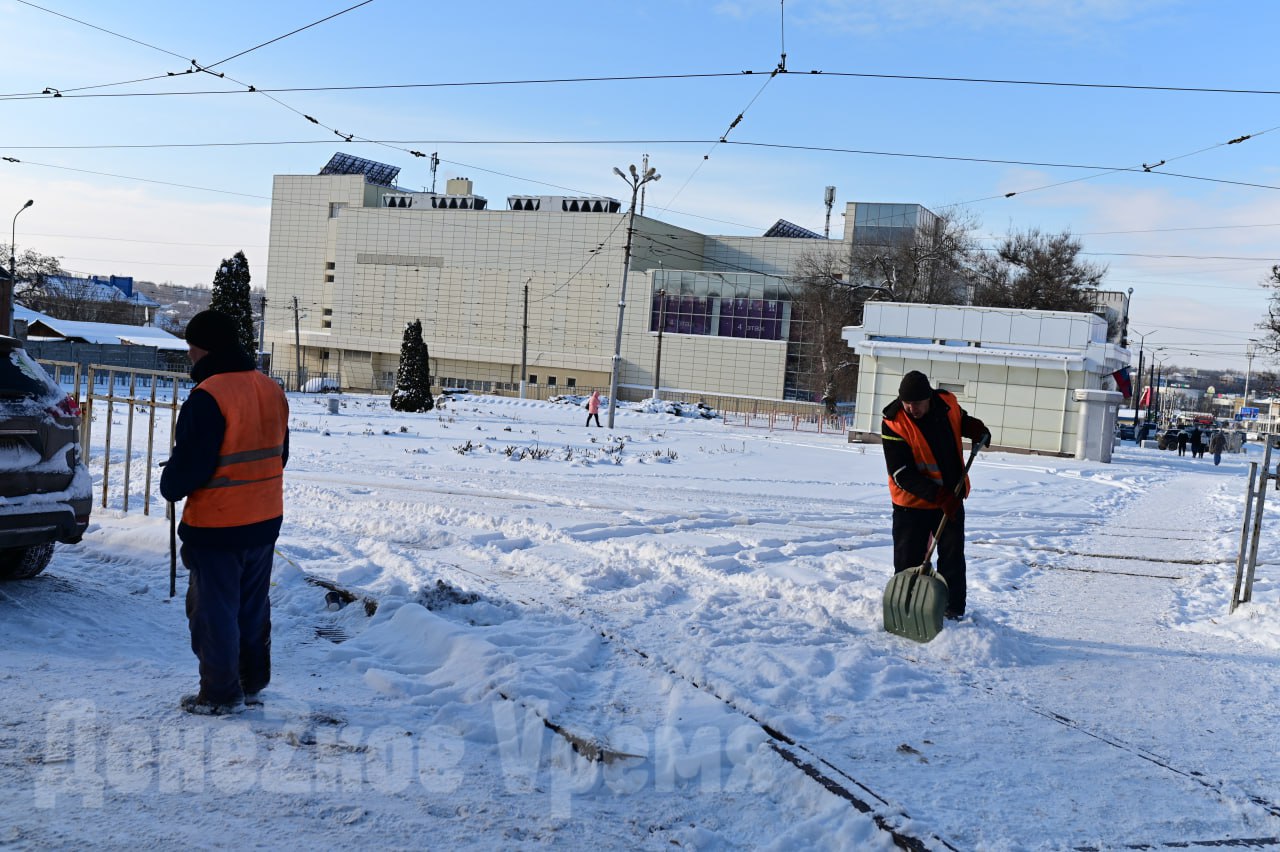 Глава муниципального округа Донецк Алексей Кулемзин отчитался, что 18 января сотрудники ДРСУ очищали дороги, тротуары и остановочные павильоны от снега. В работах было задействовано 53 единицы спецтехники.
